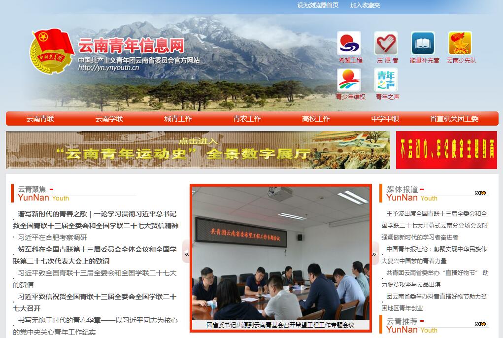 云南青年网,共青团云南省委主办的新闻网站,是省内最大的青年主流网站。