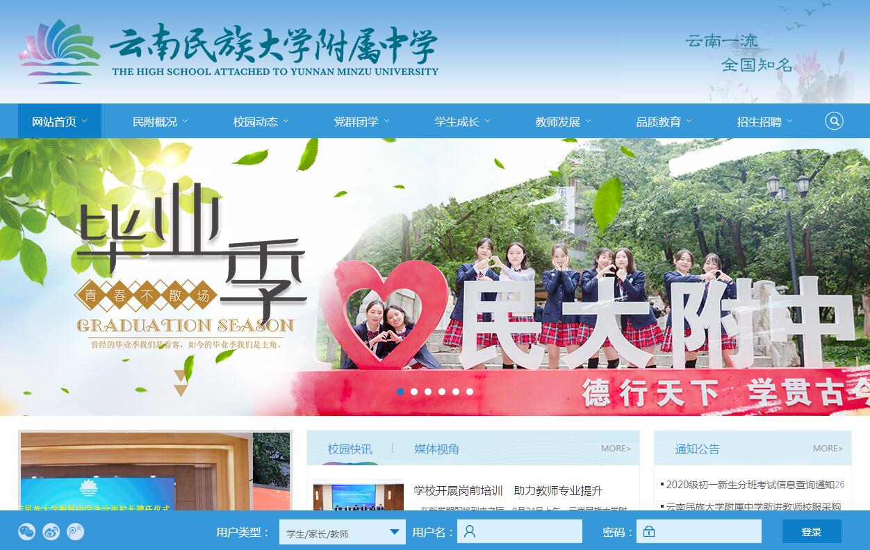 云南民族大学附属中学是由云南省教育厅批准成立、云南民族大学与呈贡区政府合作创办的一所公办学校参与的混合所有制民办一级三等完全中学。2014年办学招生,现有初、高中教学班103个,在校学生3680人,教职工345人。学校位于昆明市五华区一二一大街云南民族大学莲华校区,占地面积185亩,校舍建筑面积84353平米,是莘莘学子醉书怡情、力学奋进的理想圣地。民大附中拥有前沿的办学理念和科学的管理模式。学校紧紧围绕“品德好、品行正、品位高”的育人目标,深入践行“做有生命温度的教育,为学生的品质人生奠基”的办学理念,用务实创新的精细化管理推进学校内涵发展,全力打造“莲花品质教育”,形成了“以学生成长为本,以教师提升为本,以学校发展为本”的学校核心价值观,全面推进素质教育,办出了特色,形成了品牌。民大附中拥有灵活的办学机制,呈贡区在政策、教师编制等方面给予强有力的支持, 民办机制可以增强办学的自主性和灵活性,云南民族大学的高位引领和资源优势助推附中发展。为此,学校从全国考调组建了一支师德高尚、业务精湛的教师团队。其中特级教师2人,中级以上职称教师142人,新入职教师研究生占比达50%,形成一支教学经验丰富、学历层次高、科研能力强的创新型教学团队。民大附中实行每班36人的小班化教育,着眼学生能力素质的培养,教学组织方式、教学内容、教学模式、教学方法、教学评价均围绕学生个体而开展,为学生量身打造独一无二的专属教育。经过五年的行动研究,探索出了以“班主任制”为基础的学生成长导师制,以“教学规程”为核心的多种教学策略,以“成长档案袋”为核心的多元评价体系,确保优质的教学质量。民大附中注重学生的全面发展,构建了科学完备的课程体系,形成了公民素养、基础学力、实践创新、雅趣生活、生涯规划五大课程群。五年来,附中学子参加国家、省、市组织的学科竞赛、国际英语大赛,成绩突出,频频获奖。民大附中教学质量逐年提升,2017-2019年,学校高中部767名毕业生参加高考,有4人进入全省前50名被屏蔽,6人被清华、北大录取,40%的学生被“双一流”高校录取,2019年高考优秀率、一本上线率位居昆明市第7名,跻身昆明市名校第一方阵;学校初中部中考平均分、优秀率、成绩提升率、重点高中录取率均居昆明市前茅,真正实现了“低进高出、中进优出”的办学效果!办学五年来,学校各项工作齐头并进,先后获得“云南省民族团结教育示范学校”、“昆明市平安校园”、“五华区文明单位”、“呈贡区首届名学校”等荣誉称号,连年被呈贡区表彰为“教育工作先进单位”、办学水平年检“优秀学校”。学校办学效果得到上级教育主管部门的高度赞誉,获得同行、社会及家长的一致认可,新华网、凤凰网、云南日报、昆明日报等主流媒体多次报道学校的办学经验。用科学的理念引领发展,用先进的机制助推发展,以品质的课程特色发展,以多元的评价创新发展,用科学的管理内涵发展,用优质的师资保障发展,用一流的业绩促进发展。民大附中必将在彩云之南快速崛起,成为云南中学教育的窗口性、示范性学校,成为学生发展的快乐沃土,名牌高校的生源基地,国家栋梁的成长摇篮!