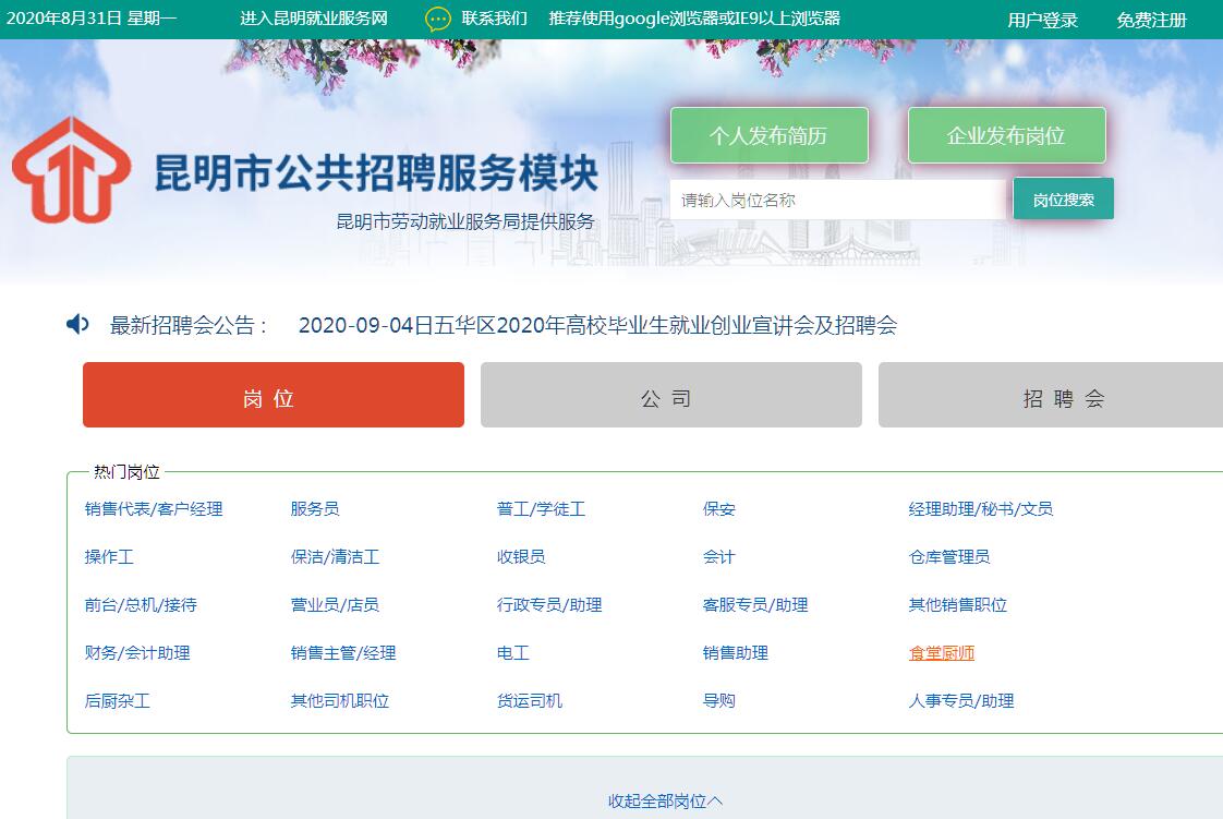 昆明市公共招聘系统由昆明市劳动就业服务局主办。