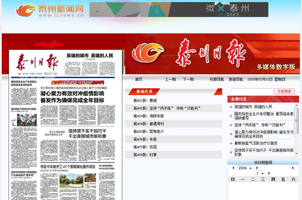 泰州日报电子版,泰州日报多媒体数字化报刊平台。