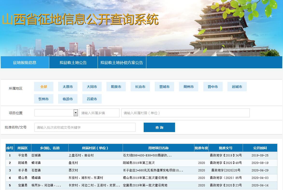 山西省征地信息公开查询系统
