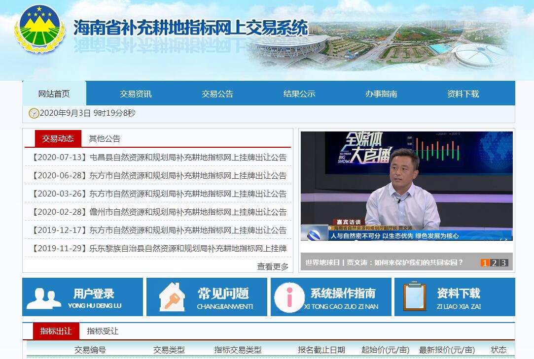 | 网站名称: | 海南省补充耕地指标网上竞价交易系统 | ||