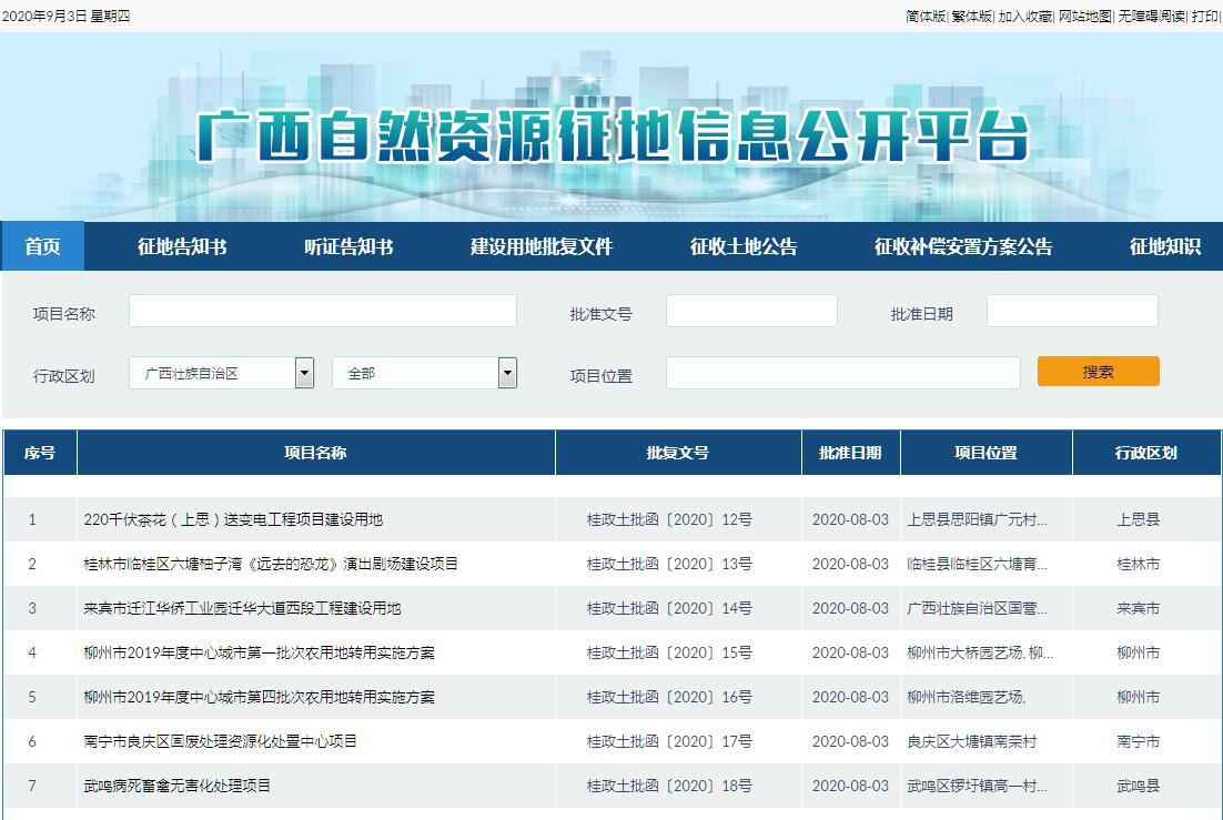 广西自然资源征地信息公开平台由广西壮族自治区自然资源厅主办。