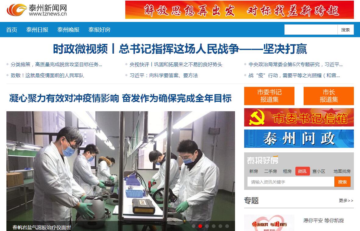 | 网站简介: 泰州新闻网是泰州日报社旗下网站、包括数字报、微信等在内的新媒体信息整合传播平台。泰州(地级)市委机关报,泰州第一的主流媒体。创刊一九九六年九月二十四日。前身为《泰州市报》。对开八版。 |