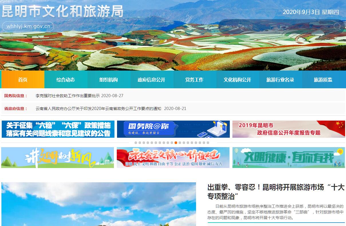 昆明市文化和旅游局主要职责:(一)贯彻落实党的文化工作方针政策,研究拟订文化和旅游政策措施,起草文化和旅游地方性法规和政府规章草案。(二)统筹规划文化事业、文化产业和旅游业发展,拟订发展规划并组织实施,推进文化和旅游融合发展,推进文化和旅游体制机制改革。(三)管理全市性重大文化艺术活动,指导全市重点文化设施建设,组织全市旅游整体形象推广,促进文化产业和旅游产业对外合作和国际、国内市场推广,制定旅游市场开发战略并组织实施,指导、推进全域旅游。(四)指导、管理文艺事业,指导艺术创作生产,扶持体现社会主义核心价值观、具有导向性代表性示范性的文艺作品,推动各门类艺术、各艺术品种发展。(五)负责公共文化事业发展,推进全市公共文化服务体系建设和旅游公共服务建设,深入实施文化惠民工程,统筹推进基本公共文化服务标准化、均等化。(六)指导、推进文化和旅游科技创新发展,推进文化和旅游行业信息化、标准化建设。负责全市智慧旅游建设。(七)负责非物质文化遗产保护,推动非物质文化遗产的保护、传承、普及、弘扬和振兴。(八)拟订文物、博物馆事业发展规划并组织实施,管理、指导文物、博物馆事业工作。(九)统筹规划文体产业和旅游产业,组织实施文化和旅游资源普查、挖掘、保护和利用工作,促进文体产业和旅游产业融合发展。(十)指导文化和旅游市场发展,对文化和旅游市场经营进行行业监管,推进文化和旅游行业信用体系建设,依法规范文化和旅游市场。(十一)指导全市文化和旅游综合执法,组织查处全市性、跨区域文化、文物、出版、广播电视、电影、旅游等市场的违法行为,督查督办大案要案,维护市场秩序。(十二)指导、管理文化和旅游对外、对港澳台及境内交流、合作和宣传、推广、促销工作,参与指导有关驻外及驻港澳台文化和旅游机构工作,组织大型文化和旅游对外及对港澳台交流活动,推动中华文化走出去。(十三)负责全市文化艺术和旅游人才队伍建设,加强中青年文化艺术人才和少数民族文化艺术人才培养,推进文化院团与高等院校合作培养人才,开展文化艺术及旅游人才技能培训。协调、落实高层次人才有关服务工作。(十四)统筹和协调开展大型文体旅游活动和品牌赛事。(十五)完成市委、市政府和上级部门交办的其他任务。