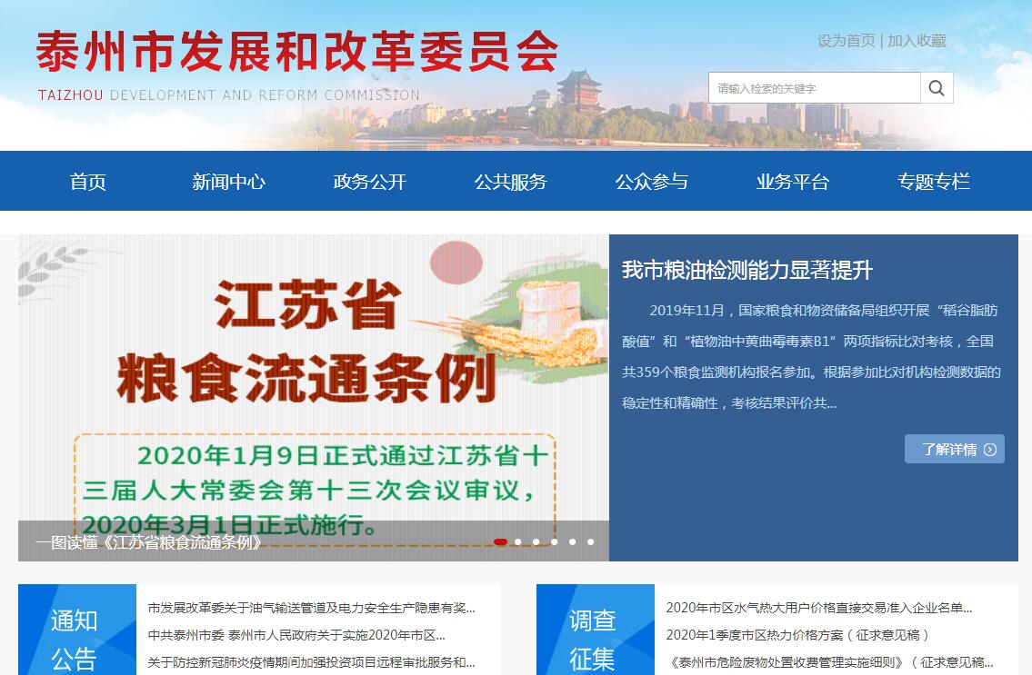 泰州市发展和改革委员会负责贯彻落实党中央关于发展改革工作的方针政策和省委、市委相关部署,在履行职责过程中坚持和加强党对发展改革工作的集中统一领导。其主要职责是:(一)拟订并组织实施全市国民经济和社会发展战略、中长期规划和年度计划。牵头组织全市统一规划体系建设,负责市级专项规划、区域规划、空间规划与全市发展规划的统筹衔接。依法参与组织起草相关地方性法规、规章草案;(二)提出加快建设全市现代化经济体系、推动高质量发展的总体目标、重大任务以及相关政策。组织开展重大战略规划、重大政策、重大工程等评估督导,提出相关调整建议;(三)统筹提出全市国民经济和社会发展主要目标,监测预测预警宏观经济和社会发展态势趋势。综合协调宏观经济政策,牵头研究宏观经济应对措施。调节经济运行,协调解决经济运行中的重大问题。拟订并组织实施有关价格政策,组织制定市级管理的重要商品、服务价格和重要收费标准。参与拟订市级财政政策和土地政策;(四)指导推进和综合协调全市经济体制改革有关工作。统筹推进供给侧结构性改革。协调推进产权制度和要素市场化配置改革。推动完善相关经济制度和现代市场体系建设。会同相关部门组织实施市场准入负面清单制度;(五)研究协调有关利用外资、境外投资和国际产能合作的政策,参与研究对外开放的有关问题,承担统筹协调走出去有关工作。牵头推进实施全市“一带一路”建设工作;(六)负责投资综合管理,拟订全市全社会固定资产投资总规模、结构调控目标和政策,会同相关部门拟订政府核准的固定资产投资项目目录。统筹协调政府各类投资资金的使用,提出资金年度规模和投向并且纳入投资计划管理,安排市级有关财政性专项建设资金,负责编制市级政府投资项目年度建设计划。协调推进全市重大项目建设,编制年度重大项目建设计划。拟订并且推动落实全市鼓励民间投资政策措施;(七)推进落实区域协调发展战略、新型城镇化战略和重大政策,组织拟订相关区域规划和政策。推动落实“一带一路”建设、长江经济带发展、长三角区域一体化发展等国家重大战略。统筹推进扬子江城市群和里下河生态经济区等重点功能区建设。组织编制并推动实施全市新型城镇化规划。牵头协调推进对口支援、对口帮扶和对口合作工作;(八)组织拟订全市综合性产业政策。协调全市一二三产业发展重大问题并且统筹衔接相关发展规划和重大政策。统筹规划全市重大产业项目和生产力布局。协调推进重大基础设施建设发展,组织拟订并且推动实施全市服务业战略规划和重大政策,推进先进制造业与现代服务业融合发展。综合研判全市消费变动趋势,拟订实施促进消费的综合性政策措施;(九)推动实施创新驱动发展战略。会同相关部门拟订推进全市创新创业的规划和政策,提出创新发展和培育经济发展新动能的政策。会同相关部门规划布局全市重大科技基础设施。组织拟订并推动实施全市高技术产业和战略性新兴产业发展规划政策,协调产业升级、重大技术装备推广应用等方面的重大问题;(十)跟踪研判经济安全等风险隐患,提出相关工作建议。负责全市重要商品总量平衡和宏观调控,协调落实重要工业品、原材料和重要农产品进出口调控措施;(十一)负责全市社会发展与国民经济发展的政策衔接,协调有关重大问题。组织拟订全市社会发展战略、总体规划,统筹推进基本公共服务体系建设和收入分配制度改革,提出促进就业、完善社会保障与经济协调发展的政策建议。负责全市社会信用体系建设工作;(十二)推进实施可持续发展战略,协调生态环境保护与修复、能源资源节约和综合利用等工作。会同有关部门提出健全全市生态保护补偿机制的政策措施,综合协调环保产业和清洁生产促进有关工作。提出全市能源消费总量控制目标、任务并且组织实施;(十三)会同有关部门拟订推进全市经济建设与国防建设协调发展的战略和规划。推动实施军民融合发展战略,组织编制全市国民经济动员规划,协调和组织实施全市国民经济动员有关工作;(十四)贯彻落实有关能源工作的法律法规规章和政策,研究提出我市能源发展战略的建议,依法拟订能源发展规划、计划、政策并组织实施。研究能源战略布局和结构调整,承担能源行业管理职能。按照国家和省规定的权限和程序,审核上报规划内和年度计划规模内能源固定资产投资项目。监测能源发展状况,衔接能源生产建设和供需平衡。负责编制政府性扶持新能源和可再生能源、能源行业节能等专项资金计划并组织实施;(十五)研究提出全市粮食和物资储备发展规划建议。组织实施全市战略和应急储备物资的收储、轮换和日常管理,落实有关动用计划和指令。管理全市粮食、棉花和食糖储备,负责市级储备粮棉管理,承担粮食安全责任制考核工作。统一负责本市储备基础设施建设和管理。负责市级政策性粮食储备企业安全生产工作的监督管理,承担市级物资储备承储单位安全生产的监管责任。负责对管理的政府储备、企业储备以及储备政策落实情况进行监督检查;(十六)承担市委军民融合发展委员会办公室、市推进“一带一路”建设工作领导小组办公室、市推动长江经济带发展领导小组办公室、市长三角一体化建设领导小组办公