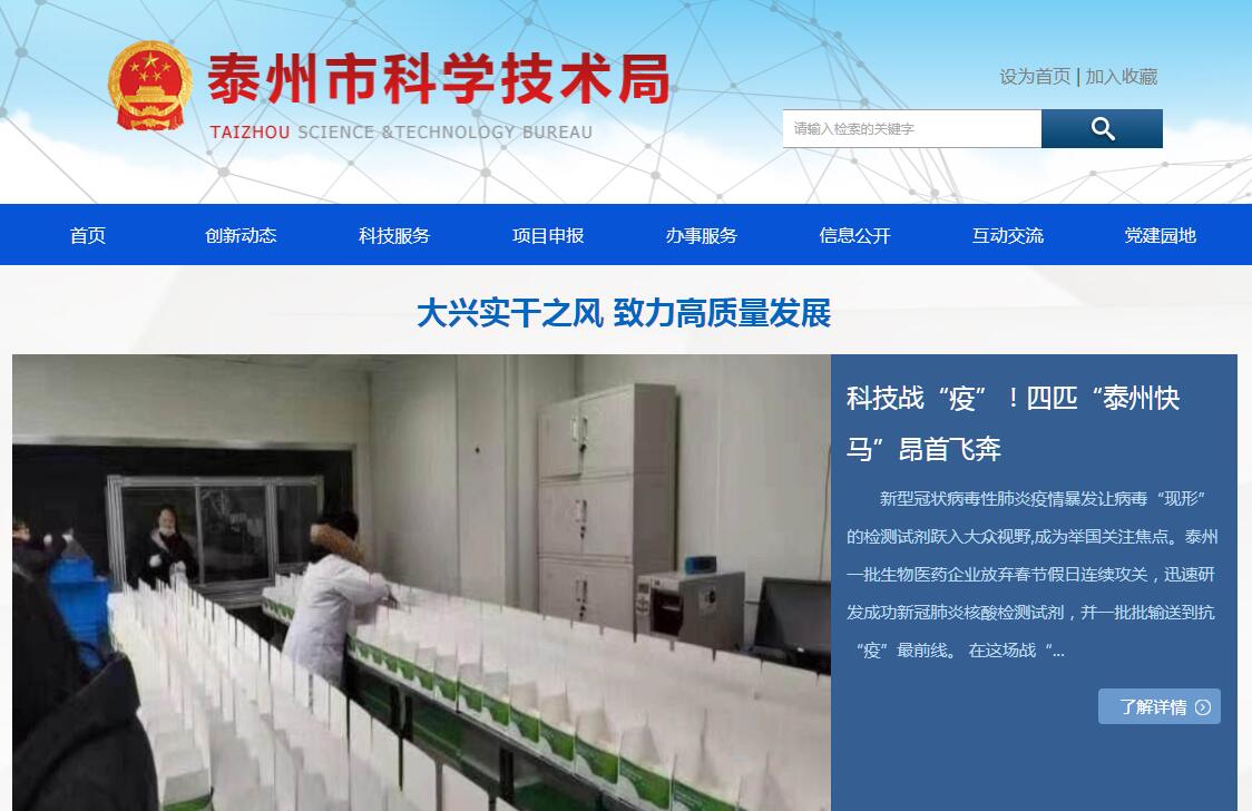 泰州市科学技术局主要职责:(一)贯彻执行国家和省有关科技工作的方针政策、法律法规,拟订全市科技发展规划、年度计划和科技工作的规范性文件,并组织实施。(二)负责编制和组织实施基础研究、科技支撑等各类科技计划,负责统筹协调基础研究、前沿技术研究、重大社会公益性技术研究及关键技术、共性技术研究,牵头组织国民经济与社会发展重要领域的重大关键技术攻关,协调推动国家和省科技重大专项的组织实施。(三)推进全市科技创新体系建设。提出科技体制改革的政策和措施建议,推进科技体制改革工作。(四)指导重大研发机构、重点实验室、科技公共服务平台、企业院士工作站等科技基础设施的建设,负责市级及其以上相关载体的认定、申报工作,提出科研条件保障的规划和政策建议,推进科技基础条件平台建设和科技资源共享。(五)会同有关部门拟订高新技术发展及其产业化的政策措施,指导高新技术产业开发区(园区)、高新技术特色产业基地和科技孵化器、科技中介服务机构等各类科技创新载体的建设。负责全市高新技术企业的组织评审、报批工作。(六)牵头拟订促进产学研结合的政策措施,指导科技成果转化工作,会同有关部门拟订激励企业创新的政策措施。(七)组织拟订科技促进农村和社会发展的政策措施,组织实施现代农业科技创新工作,指导科技示范推广基地的建设。(八)负责本级科技部门经费预决算及经费使用的监督管理。会同有关部门提出科技资源合理配置的重大政策和措施建议,优化科技资源配置。(九)负责科学技术奖评审的组织工作,管理科技成果、科技保密、技术市场、科技信息、科技统计和科技档案等工作。(十)会同有关部门拟订科技人才发展规划及有关政策。牵头负责全市科学普及工作。(十一)拟订全市对外科技交流计划,组织开展国际技术转移工作。根据市政府授权,承办全市对外科技交流合作中有关团组、人员出国(境)的初审事项。(十二)负责全市专利及知识产权管理工作。贯彻实施国家有关专利及知识产权的法律法规,组织起草专利及知识产权规范性文件,拟订相关发展规划、工作计划及政策措施并组织实施。负责组织协调全市知识产权有关工作,推动知识产权保护工作体系建设。会同有关部门组织实施国家和省、市知识产权战略纲要。会同有关部门建立知识产权执法协作机制,开展相关的行政执法工作。处理和调解专利纠纷,查处假冒专利行为。承担规范专利管理基本秩序的责任,规范和管理专利技术交易,负责专利实施许可合同备案工作;负责专利代理机构和专利咨询服务机构的相关管理工作;承担专利代理人的业务培训工作;会同有关部门指导和规范知识产权无形资产评估工作。统筹协调全市涉外知识产权事宜,负责专利工作的对外联络、合作交流。指导企事业单位专利工作,负责全市专利信息公共服务体系的建设,会同有关部门推动专利信息的传播利用;组织建立知识产权预警和维权援助机制;组织开展知识产权统计工作。组织开展知识产权和专利法律法规、政策宣传工作,拟订有关知识产权的教育与培训工作规划并组织实施。(十三)承办市政府交办的其他事项。