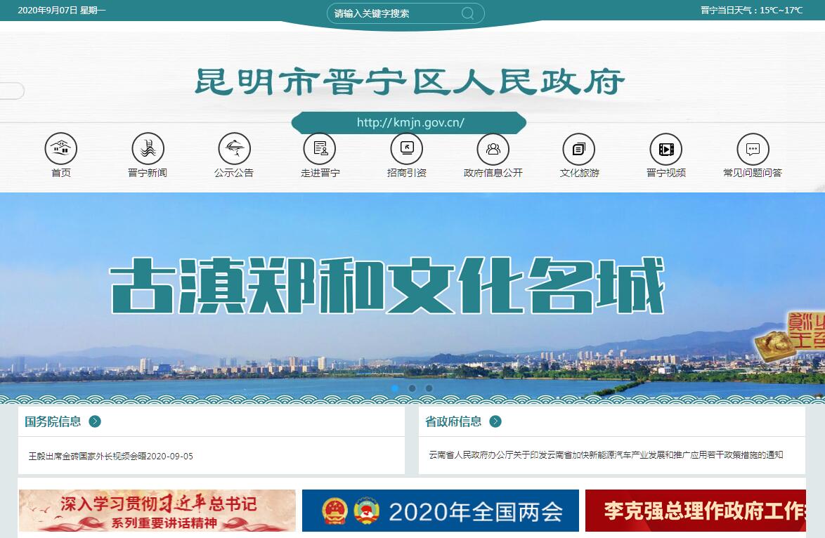 晋宁区,隶属于云南省昆明市,位于云南省中部,昆明市西南部,环抱滇池,西临西山区,北接呈贡区,南和东分别与玉溪市红塔区、江川区接壤,是昆明都市核心区的重要组成部分。晋宁区下辖昆阳街道、宝峰街道、晋城镇、二街镇、上蒜镇、六街镇、双河彝族乡、夕阳彝族乡,行政区域面积1336.66平方公里。2015年末,全区常住总人口为30.00万人。晋宁是古滇都邑,郑和故里,为世界四大磷都之一,居中国“三阳磷矿”(昆阳、开阳、襄阳)之首,先后获得“2014最美中国旅游目的地城市”、“2016百佳深呼吸小城”、“2016中国最美丽县城”、连续两次获得“中国避暑休闲十佳县”荣誉称号。2018年10月,入选2018年全国科技创新百强区。2019年1月25日,入选2018年度全国“平安农机”示范县。2019年11月,入选第二批节水型社会建设达标县(区)。2019年全区生产总值完成186.37亿元,同比增长10.0%。其中:第一产业增加值完成29.30亿元,同比增长6.4%;第二产业增加值完成41.45亿元,增速与去年同期持平;第三产业增加值完成115.61亿元,同比增长16.3%;三次产业结构比重为15.7:22.3:62.0。三次产业对全区GDP增长分别拉动1.0、0、9.0个百分点,全区经济实现了稳中有进的态势。