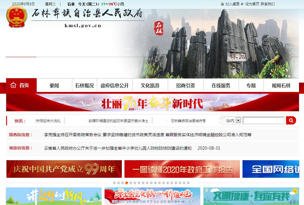 石林彝族自治县,隶属于云南省昆明市,位于云南省东部,东部和南部与红河哈尼族彝族自治州泸西县、弥勒市接壤,北部与曲靖市陆良县相邻,西部和西北部与昆明市宜良县毗连。石林彝族自治县面积1777平方公里,辖3个街道、3个镇、1个乡,2015年末常住人口 25.8万人,少数民族人口占35.8%。2018年重新确认国家卫生县城(乡镇)。2019年9月4日,石林彝族自治县入选首批国家全域旅游示范区。2019年11月,入选第二批节水型社会建设达标县(区)。2019年,全县实现地区生产总值115.36亿元,增7.1%,增速排全市第5;地方一般公共预算收入6.89亿元,增6.1%;规模以上固定资产投资70.59亿元,增6.9%;规模以上工业增加值增1.8%;社会消费品零售总额46.22亿元,增11.7%,增速排全市第5;旅游直接收入4.6亿元,增7%;城镇登记失业率2.51%;万元GDP能耗下降6.8%。全年开工项目62个,引进内资60.1亿元、外资600万美元。实现第一产业265952万元、第二产业205752万元、第三产业681890万元,三次产业结构比由20.8︰18.7︰60.5调整为23.1︰17.8︰59.1。