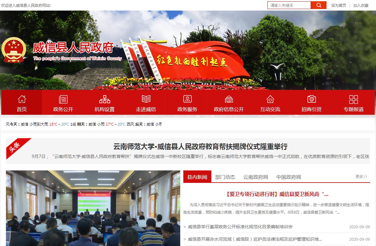 威信县,隶属于云南省昭通市,位于云、贵、川三省结合部,俗有“鸡鸣三省”之称,中国工农红军长征途中曾在这里召开了著名的“扎西会议”。全县幅员面积近1400平方公里,全县有7镇3乡87个村(社区)1634个村(居)民小组,总人口45万,其中,苗族、彝族等少数民族人口4.6万。威信是一个典型的山区县,农业以玉米和水稻、烤烟为主。威信县拥有观斗山石雕群、扎西会议会址和规模宏大的天台山溶洞,僰人悬棺及天星国家级森林公园等。县城扎西是省级历史文化名城、省级文明县城和省级卫生县城。2019年4月30日,云南省人民政府决定威信县退出贫困县序列。2019年12月16日,成贵高速铁路全线开通,威信接入全国高铁线路网。2019年全县生产总值(GDP)达636317万元,按可比价格计算(下同),比上年增长9.2%。分产业看,第一产业实现增加值98189万元,比上年增长5.5%;第二产业实现增加值167434万元,比上年增长13.6%。其中:工业增加值65479万元,比上年增长29.6%,建筑业增加值102754万元,比上年增长2.9%;第三产业实现增加值370694万元,比上年增长8.1%。三次产业结构由原来的20.5:36:43.5调整为15.4:26.3:58.3,经济结构呈“三二一”型。三次产业对经济的贡献率分别为 9.5%、40.6%、49.9%,分别拉动经济增长 0.9、3.7、4.6个百分点。按常住人口计算,人均GDP为15370元,比上年增长7.8%。