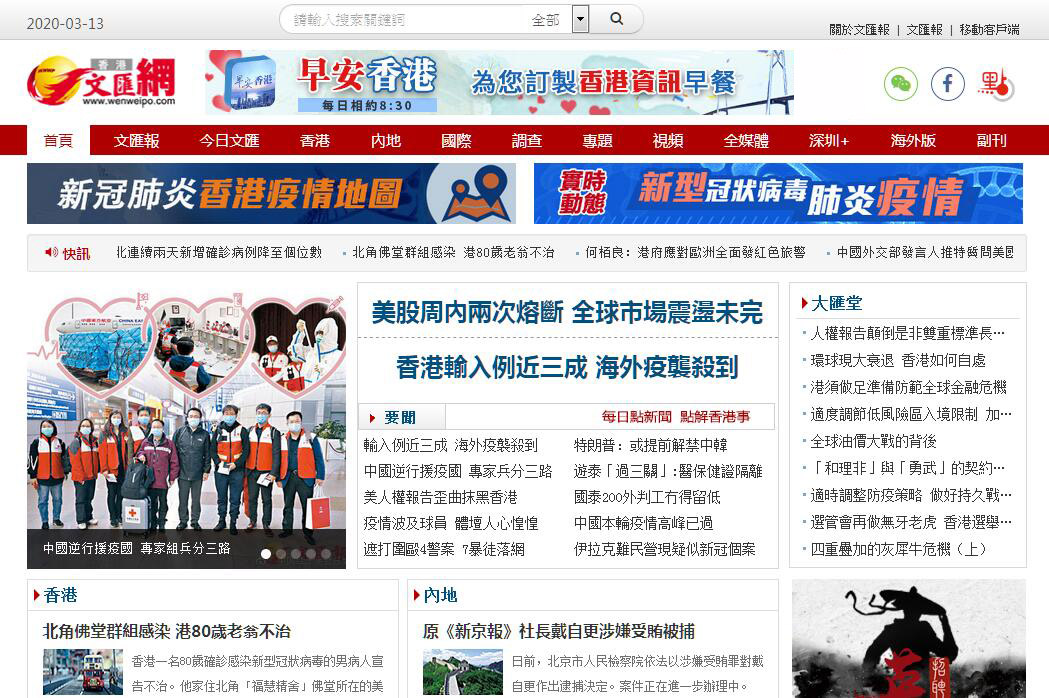 文汇网是香港文汇报全资附属网站,面向全球华人,沟通两岸三地,每日提供大量及时准确的新闻及信息。香港文汇网由香港文汇报主办,始创于1996年,2009年由香港文汇报电子版转型改版为综合性传媒网站。2010年底,由中华人民共和国文化部、国家新闻出版总署、国家广电总局等权威部门评选的被业界喻为新媒体奥斯卡的《中国新媒体领军榜》发榜,香港文汇网以唯一上榜的香港媒体网站荣膺“2010中国新闻网站影响力100强”。香港文汇网立足香港,背靠祖国,辐射海外,是香港最具有权威性和点击率最高的综合传媒网站之一,也是香港与内地乃至世界华人沟通的主要桥梁,更是为数不多的在内地保持畅通、点击率最高的香港媒体网站。香港文汇网秉承“全面、客观、及时、准确”原则,充分整合海内外的新闻资讯,并强化与网友的交流互动,使文汇网成为两岸三地综合性新闻网站及全球华人交流沟通重要平台。香港文汇网包括报纸要闻、即时要闻、文汇社评、文汇资讯、文汇博客、文汇论坛、视频、图辑、调查、专题、消费指南、地方联播、商务资讯、招商专区、文汇报海外版、网络杂志等多个频道。香港文汇网现已开通14个地方频道,包括北京、广东、云南、河南、四川、山西、山东、重庆、广西、宁夏、辽宁、湖南、内蒙古、江西。香港文汇网是在原香港文汇报网的基础上重组改版的。它标志着文汇报事业向互联网领域的拓展和延伸,也表现为香港文汇报充分挖掘两地优势,在传统媒体与新兴媒体的交融中,积极推进的尝试和探索。我们将一如既往地秉承“全面、客观、及时、准确”原则,充分整合海内外的新闻资讯,并强化与网友的交流互动,使文汇网更具生机和活力。网络不仅改变了新闻的传播模式及生态环境,也改变了世界;同时,网络还在积极地创造一种新的集体编码,浓缩世界,拉近距离,实现直接沟通,从而使世界变得更加透明与扁平,使人类的交往也更加多元与快捷。我们十分珍惜这种现代化平台给予的参与机会。未来的日子,我也将荣幸地同众多的网友一起在这里浏览新闻,谈天说地。科学技术、特别是资讯技术的迅猛发展,推动人类社会不断进步,现代传播技术与传播方式对当代人的生活方式、行为模式、思维方式等产生着重要的影响力,网络媒体在当代社会的影响力正迅猛提升,影响范围之广远超预期。今后,香港文汇网将充分利用互联网最新成果及科技手段,不断满足网民参与资讯传播和观点交流的诉求,坚持加强网络与网友互动交流的功能,构建更为适合网友需要的交流沟通平台。