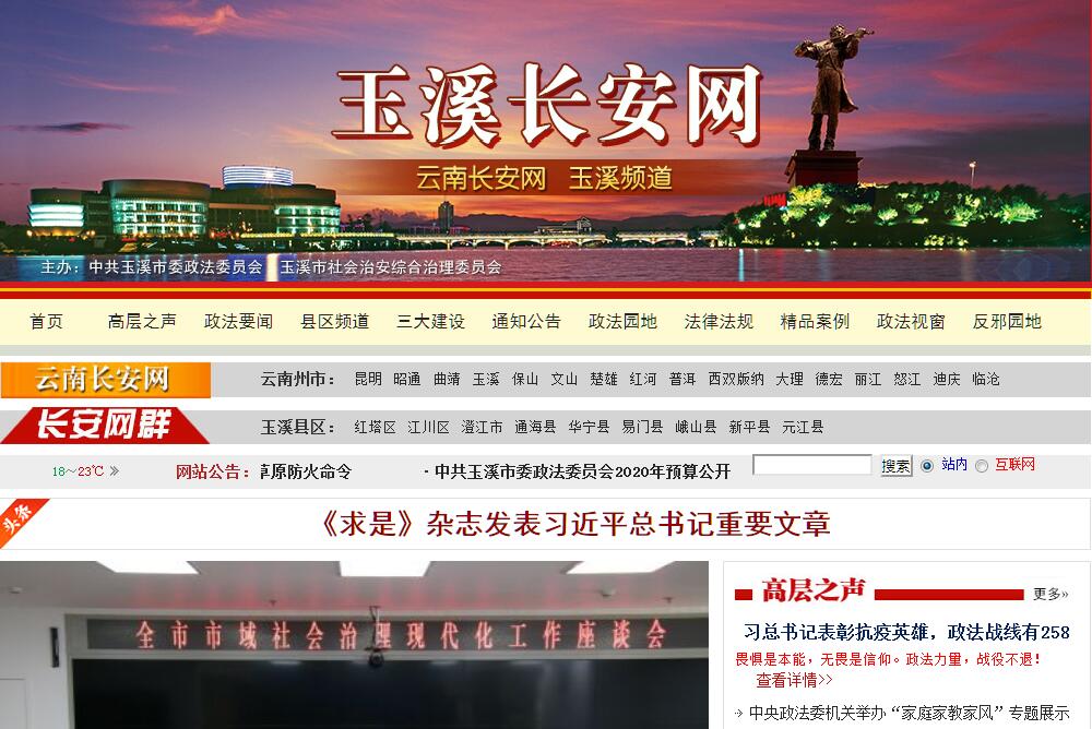 | 网站简介: 玉溪长安网是中共玉溪市委政法委员会、玉溪市社会管理综合治理委员会的门户网站,玉溪市政法综治系统的重要网络宣传阵地、信息发布渠道和舆论引导平台。 |