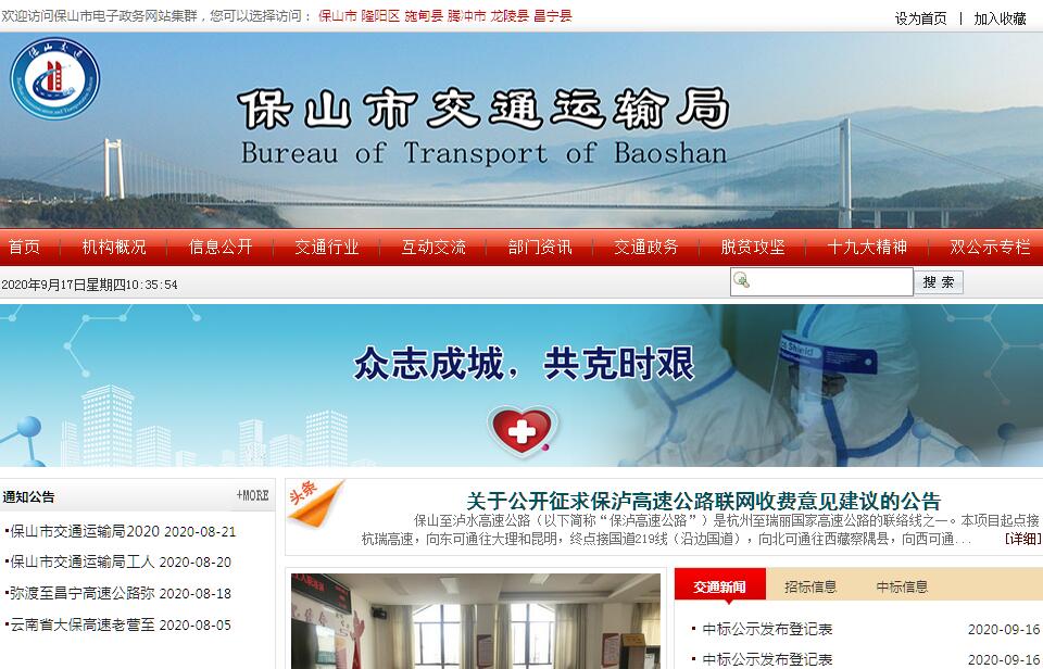 保山市交通运输局主要职责:(一)承担涉及综合运输体系的规划协调工作,会同有关部门组织编制综合运输体系规划,指导交通运输枢纽规划和管理。(二)组织制定并监督实施交通运输发展战略、行业规划、政策和标准。组织起草有关草案,提出有关法律、法规的实施意见;拟定综合运输计划并组织实施;参与制定物流业发展战略和规划,制定有关政策和标准并监督实施。指导公路、水路行业有关体制改革工作。(三)承担道路、水路交通运输市场监管责任;组织制定道路、水路运输有关政策、准入制度、技术标准和运营规范的实施意见并监督实施;指导城乡客运及有关设施规划和管理工作,指导出租汽车行业管理工作;指导公共汽车的运营和汽车租赁;负责权限范围内汽车出入境运输、国际和国境河流运输及航道有关管理工作。(四)承担公路、水路建设市场监管责任;组织制定公路、水路工程建设相关制度、技术标准及实施细则、办法并监督实施;组织协调公路、水路有关重点工程建设和工程质量、安全生产监督管理工作;负责监督交通基础设施建设资金的管理、使用;负责交通运输基础设施建设、养护、市场和收费的监督管理;负责路政管理,依法保护公路路产路权。(五)承担权限范围内的水上交通安全监督管理责任;负责水上交通管制、船舶及相关水上设施检验、登记和防止污染、水上消防、救助打捞、通信导航、航道管理养护、船舶与码头设施保安及危险品运输监督管理工作;负责船员管理有关工作;指导管理水域水上交通安全事故、船舶及相关水上设施污染事故的应急处置,依法组织或参与事故调查处理工作;负责码头、水运的行业管理。(六)指导公路、水路行业安全生产和应急管理工作;组织协调重点物资和紧急客货运输,负责高速公路及重点干线公路网运行监测和协调,承担国防动员委员会交通战备办公室有关工作。(七)指导交通运输信息化建设,监测分析交通运行情况,负责公路、水路交通运输行业综合统计,提供信息和咨询服务;指导交通运输行业科技开发、教育培训、环境保护和节能减排工作;指导交通行业协会、学会工作。(八)承办市委、市人民政府和上级机关交办的其他事项。