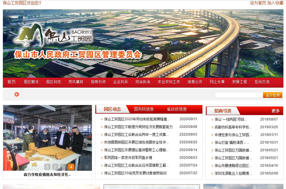 | 网站简介: 保山工贸园区成立于2012年,规划建设面积80平方公里,北至城南大道、东至东山,南至西邑乡北部,西至东河和云保高速。按照“开放前沿,产业高地”的目标和定位,重点布局硅基产业,同时辅助发展电子信息、新材料和轻纺产业。截至目前,园区完成开发面积22平方公里,入驻企业130户,规模以上企业59户,直接或间接解决就业超过2万人。围绕将保山工贸园区建设成为80平方公里30万—40万人的保山中心城市东部新城、产城融合新区,“十三五”期间产值实现千亿元的目标,保山工贸园区广大干部职工锐意创新,狠抓实干,园区建设取得了阶段性成效。截至目前,保山工贸园区累计完成主营业务收入504亿元,完成工业总产值510亿元,完成投资278亿元,招商引资引进到位资金156亿元。建设了水厂、变电站、医院、学校等配套设施,建成了标准厂房50万平方米、公共租赁住房5594套,实现了招商引资企业拎包入住。保山工贸园区属全国纺织产业转移示范园区、云南省省级小企业创业示范基地、云南省高新技术产业开发区、国家知识产权试点园区,也是全省重点培育的10个千亿园区之一。 |