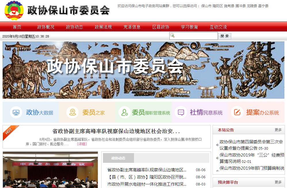 保山市政协在不同时期围绕全市经济、政治、文化、社会建设中的重大问题积极履行职能,建言献策,发挥了重要作用。政协保山市委员会成立以来,高举团结和民主两大主题,积极履行政治协商、民主监督、参政议政职能,加强政协自身建设,为保山经济发展、社会和谐、边疆稳定作出了重要贡献。政治协商注重实效。通过全会协商、常委会协商、专题协商、对口协商等形式就全市“十一五”规划、“十二五”规划、工业发展规划、产业政策制定、促进对外开放、走向南亚国际大通道建设等进行协商讨论,突出事前协商,促进科学民主决策。民主监督扎实有效。进一步提高提案质量、提案办理质量和提案服务质量,提出提案2171件,建议案15件。充分发挥委员中的特约监督员、督导员、陪审员的作用,加强对行政执法部门的民主监督。参政议政效果显著。围绕“加入WTO新时期对外开放发展战略”、“走向南亚保山先行一步”、“国际大通道及第三欧亚大陆桥建设”、桥头堡建设、推进“工业强市”、发展高原特色农业、挖掘抗战文化、旅游产业发展等涉及全市发展的重大问题调研视察150多次,形成调研视察报告170份。团结民主氛围浓厚。高举团结和民主两大主题,进一步扩大统一战线组织。各民主党派、工商联和无党派人士在政协中的作用得到了充分发挥。举办纪念中国人民抗日战争胜利65周年座谈会及滇西抗战纪念活动,慰问抗战老兵。每年举行各族各界人士中秋茶话会,加强与各界的联谊。充分发挥保山作为云南省著名侨乡的优势,打好“侨”牌,每年春节期间走访慰问缅甸、泰国华人华侨。积极支持并办好由市政协发起的保山市“五侨”联席会,密切与华人华侨及华侨社团的联系与交往,搭建我市与海外经济贸易、文化、旅游交流与合作平台,努力营造促进桥头堡建设的舆论氛围。从台湾引种山葵、乌龙茶成为保山出口创汇支柱产业。征辑《滇西抗战专辑》等文史资料7辑。政协自身建设更有活力,争取中共保山市委(地委)召开政协工作会议5次,制定《常委履职考核办法》和《委员履职工作规则》,推动政协履行职能制度化、规范化和程序化建设,促进了政协工作不断创新发展。