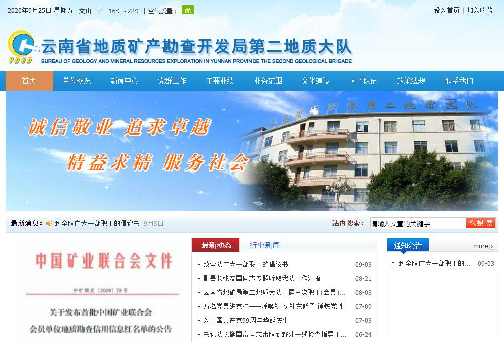 云南省地质矿产勘查开发局第二地质大队(以下简称二大队)成立于1956年3月,始称五四五地质队,历经滇东南地质队(中苏友好地质队)、文山州地质处、第二地质队等数次番号变更,于1980年8月由第二地质队、第五地质队、第十五地质队专业化重组后更名为云南省地矿局第二地质大队并沿用至今。目前,全队拥有职工643人,其中在职职工167人,各类专业技术人员120人,占职工总数的72%以上。主要从事区域地质矿产调查、区域地球物理地球化学调查、固体(液体)矿产勘查、水文工程环境地质调查、地质灾害防护与治理、工程勘察、测量测绘、岩矿鉴定与实验测试以及矿产勘查开发咨询服务等业务。是一支历史悠久、学科门类齐全、专业配套的综合性地勘队伍。六十多年来,我队找矿勘查成果累累,先后勘查和提交煤、铝、锰、铜、铅、锌、银、金等大中型矿床241处,涉及矿种48种,潜在经济价值5000亿元以上;近年来依托地质科技优势,积极争取省级财政资金和社会资金投资矿产勘查,由省级地勘基金支持攻坚找肓,发现并初步探明西畴县嘎机大型铅锌多金属矿床。先后被国家地矿部、云南省政府授予“地质找矿功勋单位”、“找矿有功单位”,中共云南省委授予“文明单位”等荣誉称号。获得部级找矿奖、科技进步奖项目一等奖4个、二等奖3个、三等奖3个。六十多年来,我队扎根滇东南,面向全省,先后承担了大区域的基础地质、区域矿产、区域水文调查工作。完成并提交1:20万化探和1:20万区域水文地质调查8幅;1:5万物化探测量和1:5万区域地质调查10幅。发现并探明斗南锰矿、芦柴冲铅锌矿、卖酒坪铝土矿、普阳煤矿、蒙自白牛厂银多金属矿等大中型矿床,全省率先发现卡林型金矿新类型,发现并完成者桑金矿、老寨湾金矿、底圩金矿、堂上金矿、金平长安金矿等一大批金矿床勘查工作,为当地的矿业经济发展做出了应有的贡献,为云南经济社会发展提供了基础地质信息支撑。六十多年来,我队充分利用地质技术优势,积极参与并为文山州交通、市政、水电等基础工程、能源工程建设提供服务。所提交的水文工程环境等相关地质调查基础资料,为州域内高速公路、铁路、机场等交通枢纽、“文砚同城” 等一大批重特大项目的规划、设计、建设、施工提供支持,为推动当地的城市建设和社会发展发挥了重要作用。站在新的起点,我们将继续弘扬地矿“三光荣”优良传统,秉承“求是、创新、勤奋、奉献”的二大队核心价值观,坚持“大地质、大服务、大发展”工作理念,砥砺奋进,继往开来,谱写找矿立功、服务社会、富民强队新篇章!