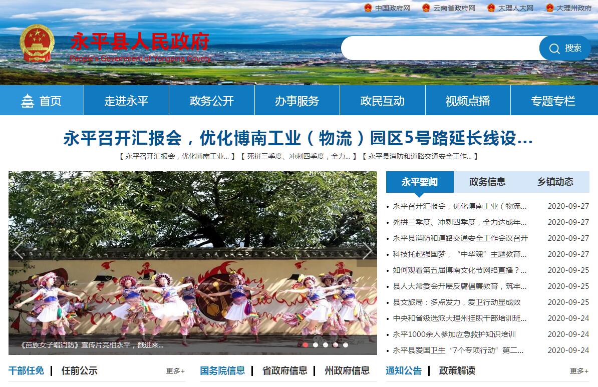 永平县位于大理州西部、澜沧江东岸,是大理州的“西大门”。县城驻地博南镇,东距大理市89公里,西距保山市76公里。永平自古就是云南腹地通往保山、怒江、德宏等地的交通咽喉和通往缅甸、印度等南亚国家的交通要冲,古有博南古道,近有支持滇西抗战的滇缅公路(史迪威公路),今有320国道、杭瑞高速公路和在建的大瑞铁路穿境而过。全县国土面积2884平方公里,93.8%属山区。全县辖4乡3镇,有72个村委会和3个社区居委会。截止2017年底,全县总人口18.5万人,其中乡村人口13.68万人,占73.95%;有22个民族成份,少数民族人口8.1万人,占总人口的43.71%。是一个集山区、民族、贫困于一体的农业县,属国家592个扶贫开发工作重点县之一,列入国家滇西边境山区连片特困地区。2016年,县委、县人民政府确立了把永平建设成为“中缅陆路大通道上的农产品加工贸易集散地,云南省绿色产业创新示范区,滇西生态休闲文化旅游目的地”的发展定位。2019年,全县地区生产总值完成56.3亿元,同比增长7.9%,增幅位居全州第6位;一般公共预算收入完成2.7亿元,同比增长8%,增幅位居全州第7位;一般公共预算支出完成22.8亿元,同比增长6%,增幅位居全州第5位;规上固定资产投资完成26.3亿元,同比增长14.9%,增幅位居全州第8位;规上工业增加值完成4.3亿元,同比增长19%,增幅位居全州第2位;社会消费品零售总额完成14.1亿元,同比增长10.7%,增幅位居全州第4位;城镇居民、农村常住居民人均可支配收入分别达34969元、11331元,同比分别增长7.8%、10.2%,增幅分别位居全州第6位和第8位。