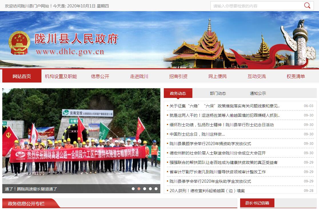 陇川,傣语称“勐宛”,意为太阳照耀的地方。隶属云南省德宏州,位于中国西南边陲,与缅甸山水相连,阡陌相连,国境线长50.899公里,国土面积1931平方公里,总人口181580人(2010年),县城章凤距省府昆明779公里,是中国西南边陲的最端。陇川县辖8乡4镇1个国营农场,总面积1913平方公里,有耕地面积35万亩,人均耕地近3亩;全县总人口18万人,其中农业人口12万人。境内少数民族主要有景颇族、傣族、阿昌族、傈僳族、德昂族和回族,为中国景颇族和阿昌族人口分布最多的县。陇川属典型的边疆多民族农业县,具有土地开发成本低、适宜发展绿色产业经济的最大优势和发展对外贸易经济的口岸区位优势。2019年,全县地区生产总值完成627920万元,按可比价计算,同比增长9.1%。第一产业增加值204672万元,增长5.9%,对全县经济增长的贡献率为20.8%,拉动全县GDP增长1.9个百分点。第二产业增加值119694万元,增长8.4%,对全县经济增长的贡献率为19.9%,拉动全县GDP增长1.8个百分点。其中:工业增加值64503万元,增长3.5%;建筑业增加值45899万元,增长25.1%。第三产业增加值303554万元,增长11.7%,对全县经济增长的贡献率为59.3%,拉动全县GDP增长5.4个百分点。三次产业增加值结构比重为33:19:48。全县人均GDP达到31907元,比上年增加7818元,增长32.5%。非公经济实现增加值287466万元,比上年增长9.5%,占全县GDP的比重达45.8%,比重比上年增加5.4个百分点。