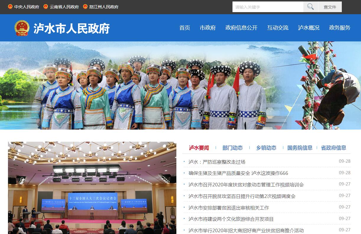 泸水市,为云南省县级市,怒江傈僳族自治州所辖,州政府所在地,位于云南省西部,北与福贡县接壤,东北与兰坪白族普米族自治县毗邻,东与大理白族自治州的云龙县相邻,南靠保山市的隆阳区,西南连腾冲市,西与缅甸接壤,总面积3203.04平方公里,国境线长136.24公里,占云南省边境线的3.36%。截至2015年末,泸水辖6镇3乡,总人口17.8758万人(2014年)。泸水市境内居住着傈僳族、白族、怒族等21种民族,少数民族人口占总人口的87%。泸水县地处横断山脉纵谷地带,境内雄奇险秀的峡谷山川,是“三江并流”世界自然遗产和中国香格里拉生态旅游区的重要组成部分。2018年9月25日,获得商务部“2018年电子商务进农村综合示范县”荣誉称号。2019年,全市实现地区生产总值70.85亿元、增长6%,完成规模以上固定资产投资74.99亿元、增长21.7%,农业总产值14.79亿元、增长5.4%,规模以上工业增加值8.88亿元、增长7.6%,社会消费品零售总额17.87亿元、增长12%,地方财政一般公共预算收入4.07亿元、增长46.3%,城镇常住居民人均可支配收入达27413元、增长8.8%,农村常住居民人均可支配收入达7248元、增长11%。