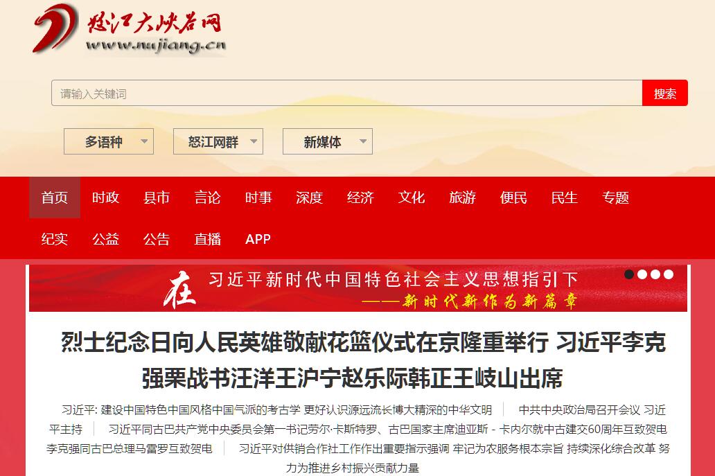 | 网站简介: 怒江大峡谷网(www.nujiang.cn)建设于2010年,是怒江傈僳族自治州的综合门户网站, 属于省内重点新闻网站之一。分别开通汉语、傈僳语、英语、缅语4个语种频道,开设16个板块40多个子栏目,权威发布时政、经济、文化、旅游、民生、投资等新闻和信息资讯,是一个集新闻、政务、服务、互动于一体的综合性网站,是面向世界宣传怒江、展示怒江形象的一个窗口。 |