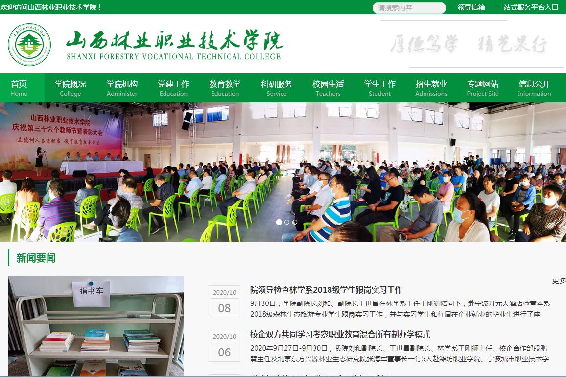 山西林业职业技术学院是山西唯一一所林业类高等职业院校,前身为创建于1952年的山西林业学校。办学近七十年来,经过几代林院人的不懈努力,逐步形成了鲜明的办学特色和优势,取得了诸多成绩。1992年被山西省人民政府命名为“省部级重点中专学校”,1999年通过了国家级重点中专学校的评估,2000年被教育部命名为“国家级重点中专学校”。2002年经省政府批准成立山西林业职业技术学院,2007年学院通过山西省高职高专人才培养工作水平评估,被评为“高职高专人才培养工作优秀单位”。2014年在人才培养水平评估中达到A级标准。2015年被确定为省级示范性高等职业院校。2018年被确定为山西省优质高等职业院校建设单位。学院占地面积175亩,建筑面积93661平方米。教学仪器设备固定资产总值3279.54万元。图书馆藏书25.53万册,电子图书26万册。学院编制325人(含实验林场和龙城森林公园),现有职工317人,其中专任教师184人,副高以上职称51人(其中教授5人),硕士学位以上127人(其中博士5人),在校生5000人。学院一直秉承“知行合一、树木树人”的教育理念,坚持“强基固本、提质增效”总基调,发扬“艰苦创业、追求卓越”的林院精神,坚持以创建“行业一流、省内领先”的高职院校为目标,以立德树人为根本,以质量求生存,以改革为动力,以涉林专业为重点,以社会需求为导向,坚持走规模、结构、质量、效益协调发展的办学之路,取得了显著的办学成就,共为社会培养了30000余名高素质高技能人才,为全省经济社会的可持续发展作出积极贡献。