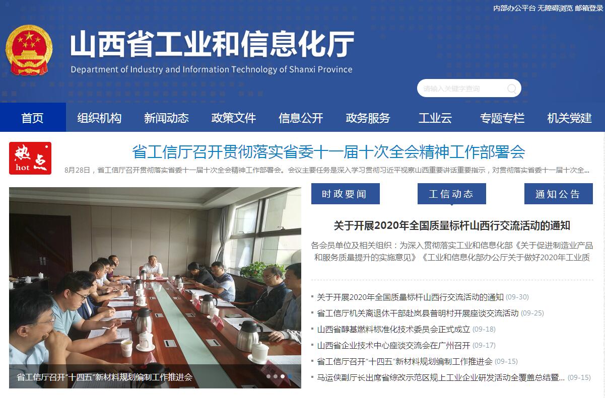 山西省工业和信息化厅主要职责:(一)贯彻执行国家工业和信息化工作的法律法规和方针政策,研究起草工业和信息化地方性法规、规章草案和相关政策并组织实施。(二)提出全省工业高质量发展战略和政策,协调解决工业高质量发展进程中的重大问题,拟订并组织实施工业和信息化发展规划,推进产业结构战略性调整和优化升级,推进信息化和工业化融合。(三)制定全省工业和信息化行业规划和产业政策,提出优化产业布局、结构的政策建议,拟订行业技术规范和标准并组织实施,指导行业质量管理工作。(四)监测分析工业经济运行态势,进行预测预警,协调解决工业经济运行中的重大问题,提出相关政策建议;负责经济运行中多种交通运输方式的综合协调;开展重要运行要素的保障协调;组织推进工业领域现代物流发展工作。(五)提出工业和信息化领域固定资产投资规模和方向(含利用外资和境外投资),负责工业和信息化财政性资金安排使用工作;按规定权限,负责企业技术改造类固定资产投资项目(不含煤炭类项目)的核准、备案。负责全省新型工业化产业示范基地、工业园区、信息产业园区的宏观指导、规划发展、组织协调和综合管理工作。(六)拟订高新技术产业中涉及生物医药、新材料、信息产业等的规划、政策和标准并组织实施;指导行业技术创新和技术进步,以先进适用技术优化提升传统产业;组织实施全省有关国家科技重大专项,推进相关科研成果产业化,推动软件业、信息服务业和新兴产业发展。(七)负责培育发展全省战略性新兴产业,承担全省新材料、原材料、装备制造、化学工业、消费品和电子信息等行业管理和产业促进工作,承担药品储备管理职责,办理山西省履行《禁止化学武器公约》有关事务。(八)综合分析工业与资源、环境协调发展的重大战略问题,促进可持续发展。拟订并组织实施全省工业和信息化领域能源节约和资源综合利用、工业循环经济、清洁生产促进政策;指导行业和企业节能环保工作;参与拟订全社会能源节约和资源综合利用、清洁生产促进规划,组织协调相关重大示范工程和新产品、新技术、新设备、新材料的推广应用。负责全省工业和信息化领域节能工作。(九)推进工业体制改革和管理创新,提高行业综合素质和核心竞争力。负责建立服务企业常态化机制,统筹推进服务企业工作。(十)承担工业和信息化应急管理、产业安全和国防动员有关工作;负责紧急状态下重要物资生产组织工作;指导工业和信息化相关行业加强安全生产管理。(十一)负责全省信息化工作。统筹推进全省工业领域信息化发展和信息安全,协调工业领域信息化建设中的重大问题,推动电信、广播电视和计算机网络融合,指导推进工业数字化、智能化、网络化制造和应用。(十二)负责全省大数据发展应用工作;负责大数据建设的规划组织实施、项目统筹管理等工作;承办省大数据发展领导小组的具体工作。(十三)管理省小企业发展促进局。会同有关部门拟订促进小企业发展的相关政策和措施,协调解决有关重大问题。(十四)负责全省无线电管理工作。(十五)负责工业和信息化领域经济技术对外交流合作工作。(十六)完成省委、省人民政府交办的其他任务。