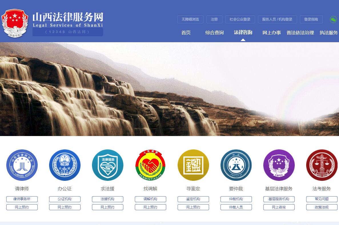 | 网站简介: 山西法律服务网(12348山西法网)是山西省司法厅着力打造的集线上(智能网络)、线中(热线电话12348)、线下(实体窗口)的公共法律服务网络体系的重要组成部分,是线上服务平台的统称。 |