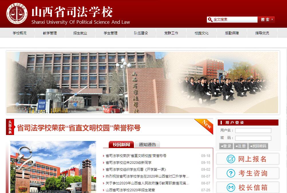 | 网站简介: 山西省司法学校经山西省人民政府批准设立,隶属于山西省司法厅。1983年10月建校,经过36年的发展建设,已成为拥有司法服务、财经商贸、信息技术、公共管理与服务、交通运输5大专业群16个专业和多个服务社会项目的一所全日制中等职业学校。培养的毕业生奋战在全省各级各类政法部门和企事业单位,为法治山西、平安三晋和经济社会发展贡献力量。 |
