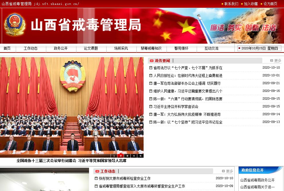 | 网站简介: 山西省戒毒管理局成立于2009年,其主要职责是:一、在省司法厅的领导下,管理全省强制隔离戒毒工作,决策戒毒工作的重大事项。二、认真贯彻执行党和国家关于强制隔离戒毒工作的方针、政策、法律、法规、规章,并监督实施。三、审查和批准全省戒毒工作的中长期规划和年度计划,并组织实施。四、负责全省强制隔离戒毒场所的规划布局。五、负责管理和监督对戒毒人员的管理、教育、生活卫生、警戒等工作。六、负责管理和指导强制隔离戒毒单位的生产、基建、财务、审计、装备工作,监督国有资产的保值增值。七、负责省直强制隔离戒毒单位领导班子、警察、职工队伍的建设和管理工作;指导市属强制隔离戒毒单位领导班子、警察、职工队伍的建设和管理工作。八、参与全省社会治安综合治理工作。九、完成上级交办的其他工作。 |