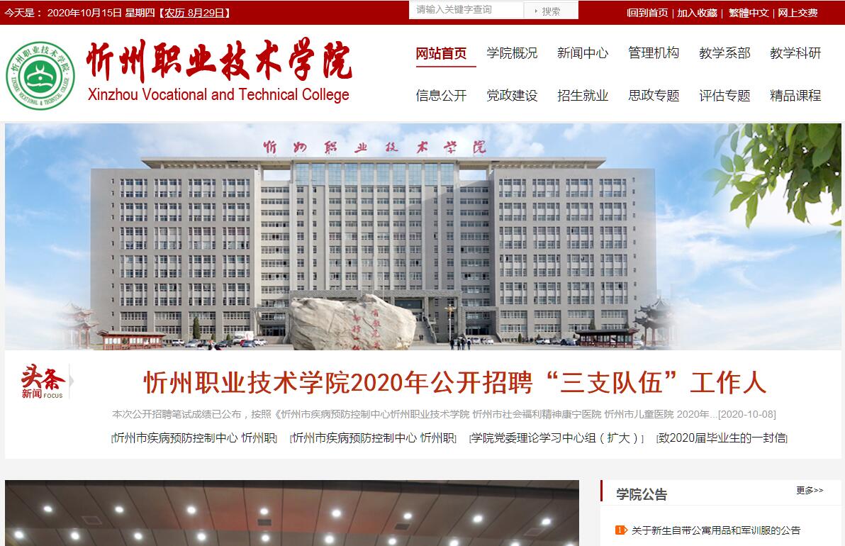 | 网站简介: 忻州职业技术学院,位于山西省忻州市,是经山西省人民政府批准、忻州市人民政府主管,国家教育部备案的全日制、综合性中高等职业院校。2009年经教育部高职院校人才培养工作评估委员会评为合格院校。是忻州市“十一五”规划重点建设项目之一。是忻州市仅有的两所大专院校之一(忻州职院和忻州师院专科部),忻州市唯一的非师范类职业院校。是忻州市职业教育“龙头”基地,忻州市职教中心。 |