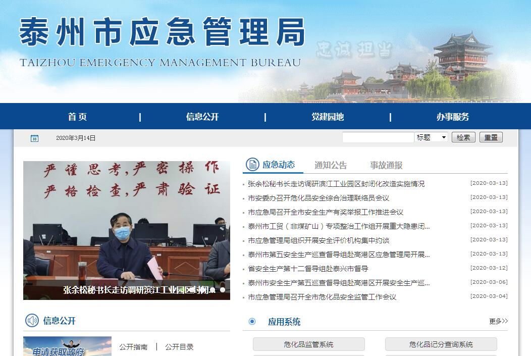 根据《省委办公厅省政府办公厅关于印发〈泰州市机构改方案〉的通知》(苏办〔2019〕7号),设立泰州市应急管理局,为市政府工作部门。其主要职责是:(一)负责应急管理工作,指导全市各级各部门应对安全生产类、自然灾害类等突发事件和综合防灾减灾救灾工作。负责安全生产综合监督管理和工矿商贸行业安全生产监督管理工作;(二)拟订应急管理、安全生产等政策,组织编制市应急体系建设、安全生产和综合防灾减灾规划。依法起草相关地方性法规、规章草案,组织制定相关规程、标准并且监督实施;(三)指导应急预案体系建设,建立完善事故灾难和自然灾害分级应对制度。组织编制市总体应急预案和安全生产类、自然灾害类专项预案。综合协调应急预案衔接工作,组织开展预案演练,推动应急避难设施建设;(四)牵头建立统一的应急管理信息系统,负责信息传输渠道的规划和布局。建立监测预警和灾情报告制度,健全自然灾害信息资源获取和共享机制,依法统一发布灾情;(五)组织指导协调安全生产类、自然灾害类等突发事件应急救援。承担市应对较大灾害指挥部工作。综合研判突发事件发展态势并提出应对建议。协助市委、市政府指定的负责同志组织较大灾害应急处置工作;(六)统一协调指挥各类应急专业队伍,建立应急协调联动机制,推进指挥平台对接。衔接解放军和武警部队参与应急救援工作;(七)统筹应急救援力量建设,负责消防、森林火灾扑救、抗洪抢险、地震和地质灾害救援、生产安全事故救援等专业应急救援力量建设。指导综合性应急救援队伍、各级各部门及社会应急救援力量建设;(八)负责消防管理工作,指导全市各级消防监督、火灾预防、火灾扑救等工作;(九)指导协调森林火灾、水旱灾害、地震和地质灾害等防治工作。负责自然灾害综合监测预警工作,指导开展自然灾害综合风险评估工作;(十)组织协调灾害救助工作,组织指导灾情核查、损失评估、救灾捐赠工作。管理、分配中央、省下拨和市级救灾款物并且监督使用;(十一)依法行使安全生产综合监督管理职权,指导协调、监督检查市政府有关部门和各市(区)政府安全生产工作。组织开展安全生产巡查、考核工作;(十二)按照分级和属地原则,依法监督检查工矿商贸生产经营单位贯彻落实安全生产法律法规规章情况及其安全生产条件和有关设备(特种设备除外)、材料、劳动防护用品的安全生产管理工作。依法组织并指导、监督实施安全生产准入制度。负责危险化学品安全监督管理综合工作和烟花爆竹安全生产监督管理工作;(十三)依法组织指导生产安全事故调查处理,监督事故查处和责任追究落实情况。组织开展自然灾害类突发事件的调查评估工作;(十四)开展应急管理、安全生产等方面的对外交流与合作,组织参与安全生产类、自然灾害类等突发事件的跨区域救援工作;(十五)拟订应急物资储备和应急救援装备规划并且组织实施,会同有关部门建立健全应急物资信息平台和调拨制度;(十六)负责应急管理、安全生产、防灾减灾宣传教育和培训工作。组织指导相关科学技术研究、推广应用和信息化建设工作;(十七)完成市委、市政府交办的其他任务。