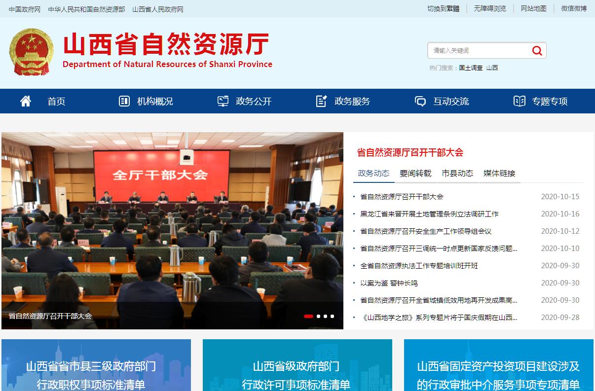 山西省自然资源厅主要职责:(一)履行全省全民所有土地矿产、森林、草原、湿地、水等自然资源资产所有者职责和所有国土空间用途管制职责。拟订全省自然资源、国土空间规划、城乡规划、测绘地理信息等政策法规规章草案,制定规范性文件并监督检查执行情况。(二)负责全省自然资源调查监测评价。组织实施国家统一规范的调查监测评价指标体系、统计标准和制度体系。组织实施全省自然资源基础调查、专项调查和监测。负责全省自然资源调查监测评价成果的统一汇交、监督管理和信息发布。指导省级以下自然资源调查监测评价工作。(三)负责自然资源统一确权登记工作。组织开展全省自然资源和不动产统一确权登记工作。制定全省自然资源和不动产统一确权登记、权籍调查、不动产测绘、争议调处、成果应用的规章制度。负责全省自然资源和不动产登记资料收集、整理、共享、汇交管理等。建立全省自然资源和不动产登记信息管理基础平台。指导监督省级以下自然资源和不动产确权登记工作。(四)负责自然资源资产有偿使用工作。健全全省全民所有自然资源资产统计制度,负责全民所有自然资源资产核算。编制全省全民所有自然资源资产负债表,加强考核管理。负责指导监督全省全民所有自然资源资产划拨、出让、租赁、作价出资和土地储备,合理配置全民所有自然资源资产。负责全省自然资源资产价值评估管理,依法收缴相关资产收益。(五)负责自然资源的合理开发利用。组织拟订全省自然资源发展规划和战略,组织实施国家自然资源开发利用标准,建立政府公示自然资源价格体系,组织开展自然资源分等定级价格评估,开展自然资源利用评价考核,指导节约集约利用。负责全省自然资源市场监管。组织研究全省自然资源管理涉及宏观调控、区域协调和城乡统筹的政策措施。(六)负责建立空间规划体系并监督实施。组织实施全省主体功能区战略,组织编制并监督实施国土空间规划和相关专项规划。开展全省国土空间开发适宜性评价,建立国土空间规划实施监测、评估和预警体系。组织划定全省生态保护红线、永久基本农田、城镇开发边界等控制线,构建节约资源和保护环境的生产、生活、生态空间布局。建立健全全省国土空间用途管制制度,研究拟订城乡规划政策并监督实施。组织拟订并实施全省土地等自然资源年度利用计划。负责土地等国土空间用途转用工作。负责全省土地征收征用管理。(七)负责统筹国土空间生态修复。牵头组织编制全省国土空间生态修复规划并实施有关生态修复重大工程。负责全省国土空间综合整治、土地整理复垦、矿山地质环境恢复治理等工作。牵头建立和实施全省生态保护补偿制度,制定合理利用社会资金进行生态修复的政策措施,提出重大备选项目。(八)负责组织实施最严格的耕地保护制度。牵头拟订并实施全省耕地保护政策,负责耕地数量、质量、生态保护。组织实施全省耕地保护责任目标考核和永久基本农田特殊保护。完善全省耕地占补平衡制度,监督占用耕地补偿制度执行情况。(九)负责管理地质勘查行业和全省地质工作。编制全省地质勘查规划并监督检查执行情况。管理省级地质勘查项目。组织实施全省重大地质矿产勘查专项。负责全省地质灾害预防和治理,监督管理地下水过量开采及引发的地面沉降等地质问题。负责全省古生物化石的监督管理。(十)负责落实综合防灾减灾规划相关要求,组织编制全省地质灾害防治规划和防护标准并指导实施。组织指导协调和监督全省地质灾害调查评价及隐患的普查、详查、排查。指导开展全省群测群防、专业监测和预报预警等工作,指导开展地质灾害工程治理。承担全省地质灾害应急救援的技术支撑工作。(十一)负责矿产资源管理工作。负责全省矿产资源储量管理及压覆矿产资源审批。负责全省矿业权管理。会同有关部门承担保护性开采的特定矿种、优势矿产的调控及相关管理工作。监督指导全省矿产资源合理利用和保护。(十二)负责测绘地理信息管理工作。负责全省基础测绘和测绘行业管理。负责全省测绘资质资格与信用管理,监督管理全省地理信息安全和市场秩序。负责全省地理信息公共服务管理。负责全省测量标志保护。(十三)推动自然资源领域科技发展。制定并实施全省自然资源领域科技创新发展和人才培养战略、规划和计划。组织制定技术标准、规程规范并监督实施。组织实施全省重大自然资源科技工程及创新能力建设,推进自然资源信息化和信息资料的公共服务。负责全省自然资源领域对外交流合作。(十四)配合国家自然资源督察在山西开展的工作。组织开展全省自然资源督察,对市、县落实自然资源和国土空间规划的重大方针政策、决策部署及法律法规执行情况进行督察。(十五)负责自然资源执法监察工作。查处自然资源开发利用和国土空间规划及测绘重大违法案件。指导省级以下自然资源主管部门有关行政执法工作。(十六)管理省林业和草原局。业务管理省地质勘查局、省煤炭地质局。(十七)省绿化委员会办公室设在省林业和草原局。(十八)负责对设区的市自然资源主管部门的管理。(十九)完成省委、省人民政府交办的其他任务。