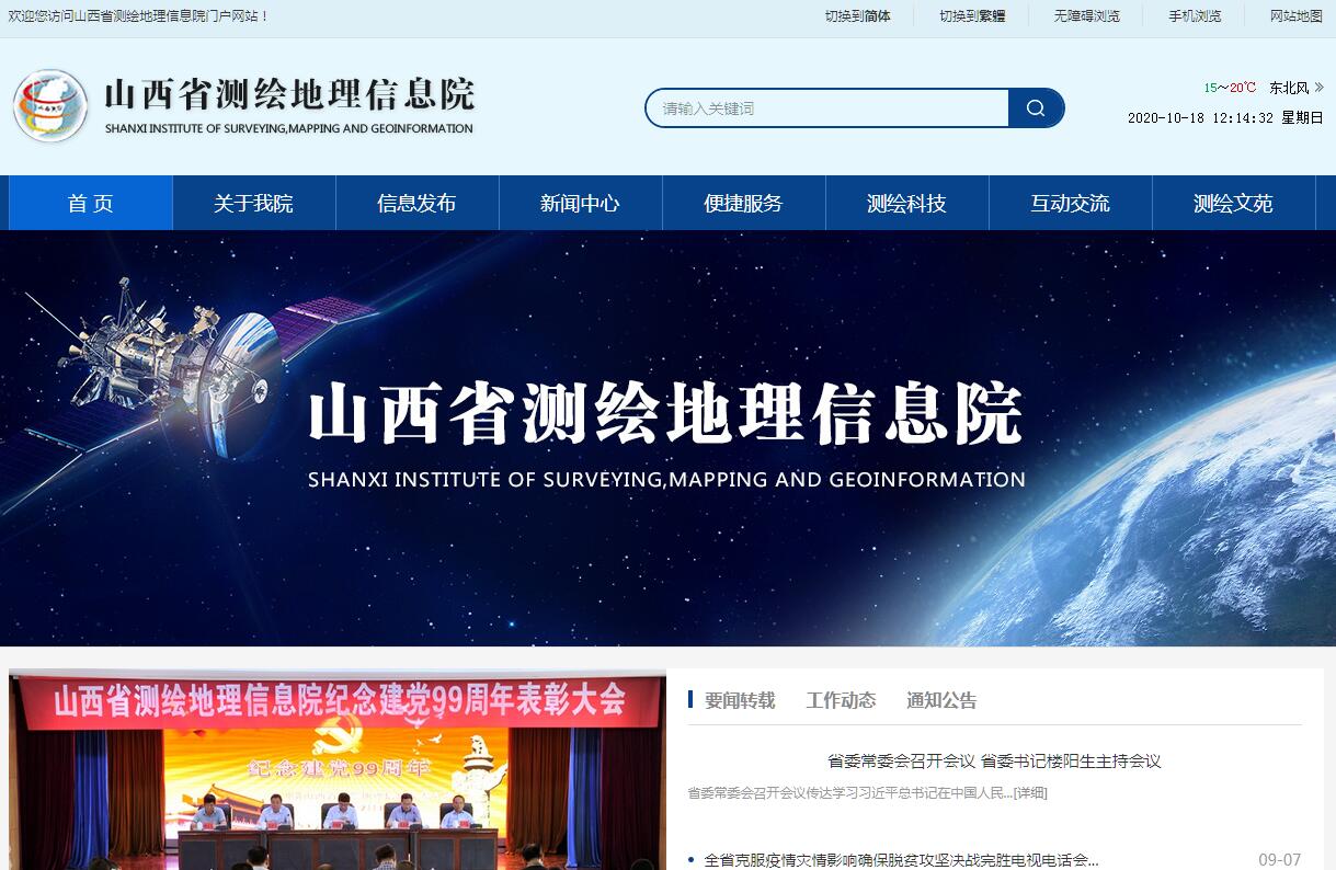 山西省测绘地理信息院主要职责:1.贯彻执行测绘地理信息方针政策、法律法规、发展规划和省委、省政府决策部署,为经济建设、社会发展、生态保护和国防建设提供服务。2.承担国土空间、自然资源、生态文明等重大普查、调查和监测工作。承担全省重点工程测绘和全省性重大测绘项目的生产和研究工作。承担自然资源要素确权技术工作。3.承担基础测绘项目的实施工作。承担测绘基准体系、测绘系统的建设和维护工作。负责山西省卫星导航基准站服务系统的建设、维护,为社会提供相关服务。4.承担全省地理国情、自然资源监测等研究工作。开展测绘地理信息应用研究、测绘科技创新和科技攻关工作。协助编写全省空间地理信息数据标准和技术标准。5.承担全省卫星遥感数据的接收、处理、应用等工作,开展卫星遥感应用研究。承担应急测绘保障任务。6.承担全省性公益性地图和地图集的设计、编制及相关工作。7.承担基础地理信息数据库和国情监测数据库的运营维护工作,为社会提供相关服务。承担全省地理信息公共服务平台的运营维护工作。8.承担全省测绘成果和航空摄影资料的收集、整理、分析、管理等工作。组织开展省级基础测绘成果资料的开发利用工作。9.负责省级基础测绘设施的维护工作。承担全省测量标志的普查、维修和保护工作。10.为互联网地理信息安全监管和公开地图审查、测绘仪器检测检定等提供技术支持和服务保障。 11.承担省委、省政府及省自然资源厅交办的其他任务。