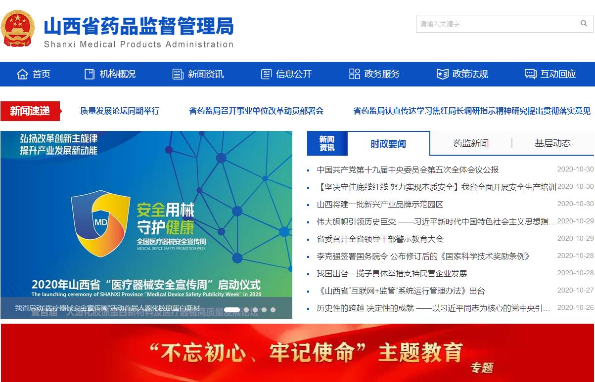 山西省药品监督管理局主要职责:(一)负责药品(含中药、民族药,下同)、医疗器械和化妆品安全监督管理。监督实施药品、医疗器械和化妆品监督管理的法律法规和规章,起草地方性法规、规章草案和规范性文件并监督实施。建立落实药品重大信息直报制度,并组织实施和监督检查,着力防范区域性、系统性药品安全风险。(二)监督实施国家药典等药品、医疗器械和化妆品标准、分类管理制度。配合实施国家基本药物制度。(三)组织监督实施药品、医疗器械和化妆品注册管理制度。负责医疗机构制剂注册管理工作。(四)负责药品质量管理规范认证,负责药品、医疗器械和化妆品生产的行政许可工作。负责药品批发许可、零售连锁总部许可工作。负责药品和医疗器械互联网销售第三方平台备案工作。负责药品、医疗器械广告审批。承担执业药师注册管理工作。(五)依法承担药品、医疗器械和化妆品安全应急管理工作。组织和指导药品、医疗器械和化妆品安全事故应急处置和调查处理工作,监督事故查处落实情况。依职责组织开展药品不良反应、医疗器械不良事件和化妆品不良反应的监测、评价、上市后风险管理和处置工作。(六)监督实施药品、医疗器械和化妆品生产、经营、使用质量管理规范。组织实施药品、医疗器械和化妆品监督检查,依法查处违法行为。监督实施问题产品召回和处置制度。完善行政执法与刑事司法衔接机制。(七)负责制定药品、医疗器械和化妆品安全科技发展规划并组织实施,推动药品、医疗器械和化妆品检验检测体系、电子监管追溯体系和信息化建设。(八)负责开展药品、医疗器械和化妆品安全宣传、教育培训、队伍建设、对外交流与合作,推进信用体系建设。(九)指导市县市场监督管理部门履行药品、医疗器械和化妆品相关监督管理职责。(十)完成省委、省人民政府交办的其他任务。