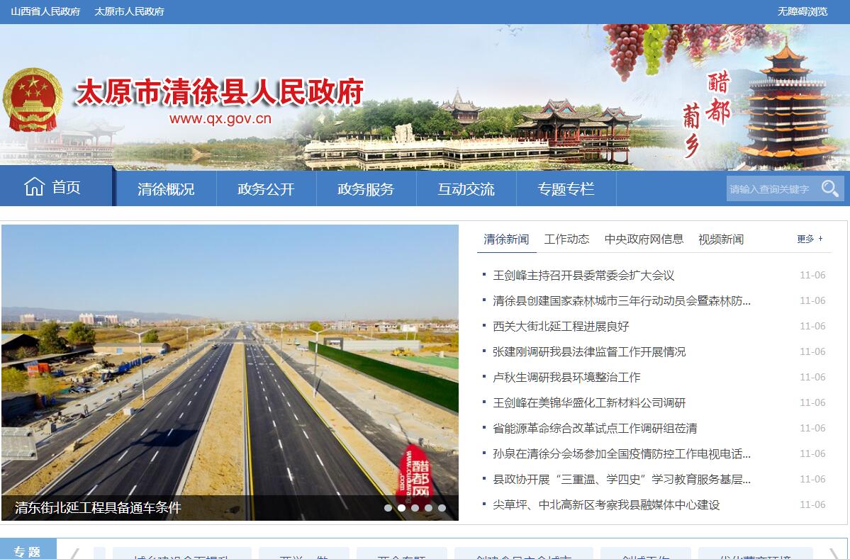 | 网站简介: 清徐县位于山西省中部,隶属于山西省太原市,208国道、307国道、青银高速公路和太中银铁路穿境而过,全县总面积609平方公里,辖4镇5乡1个街道办事处、192个行政村和6个社区居委会。截至2019年末,人口358473人。清徐古称梗阳,始建于春秋,历史悠久,人文荟萃,迄今已有2500多年的历史,是中国古典文学大师罗贯中先生、中国当代著名国画艺术大家马泉先生的故乡,也是全国葡萄产地之一和山西老陈醋的发源地,素有“葡乡”、“醋都”之称。全县共有国家级文物保护单位2个、省级4个、市级6个。清徐县基本形成了以清洁能源、绿色食品、高新技术、精密铸造、新型建材、生态旅游等六大产业为主体的县域经济新格局。2018年10月22日,清徐县入选2018年全国农村一二三产业融合发展先导区创建名单。2019年,清徐县实现地区生产总值(GDP)191.9亿元,同比增长9.6%。2020年5月,被列入县城新型城镇化建设示范名单。 |