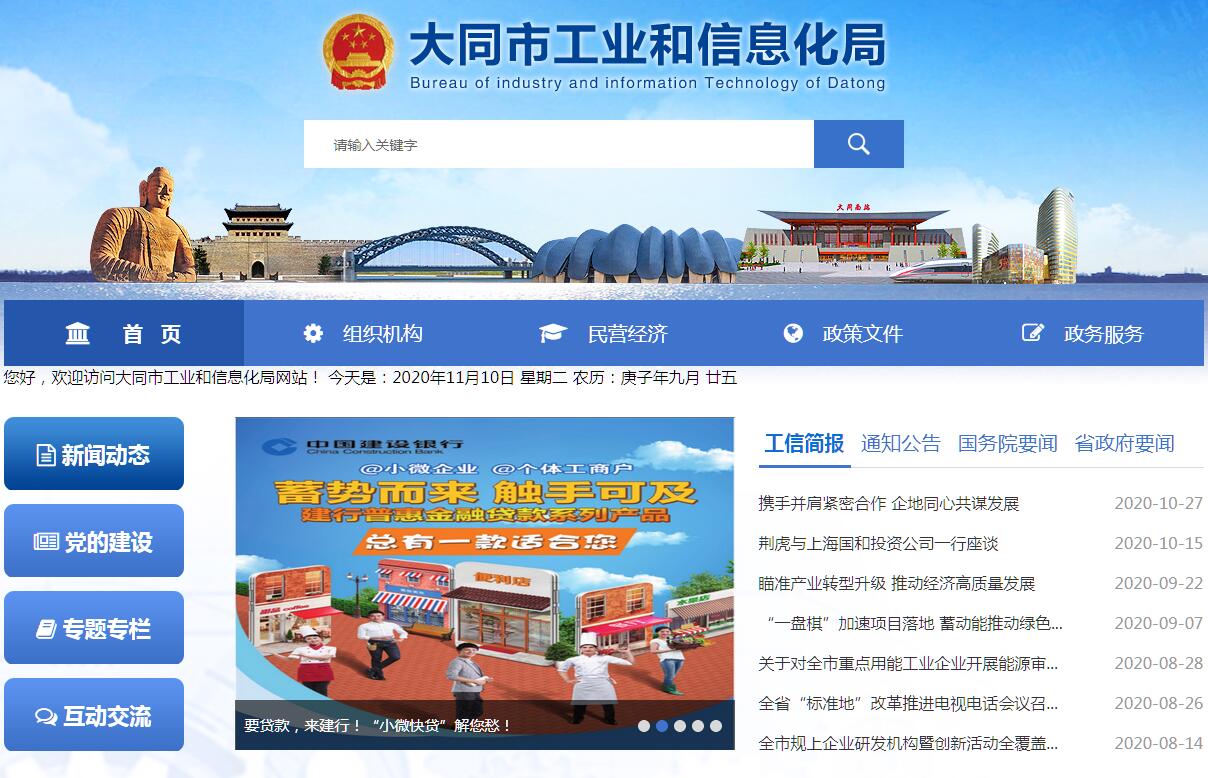 大同市工业和信息化局主要职责:(一)贯彻执行国家、省工业和信息化工作的法律法规和方针政策,研究起草工业和信息化地方性法规、规章草案和相关政策并组织实施。(二)提出全市工业高质量发展战略和政策,协调解决工业高质量发展进程中的重大问题,拟订并组织实施工业和信息化发展规划,推进产业结构战略性调整和优化升级,推进信息化和工业化融合。(三)制定全市工业和信息化行业规划和产业政策,提出优化产业布局、结构的政策建议,拟订行业技术规范和标准并组织实施,指导行业质量管理工作。(四)监测分析工业经济运行态势,进行预测预警,协调解决工业经济运行中的重大问题,提出相关政策建议。负责经济运行中多种交通运输方式的综合协调。开展重要运行要素的保障协调。组织推进工业领域现代物流发展工作。(五)提出工业和信息化领域固定资产投资规模和方向(含利用外资和境外投资),负责工业和信息化财政性资金安排使用工作。按规定权限,负责企业技术改造类固定资产投资项目(不含煤炭类项目)的核准、备案。负责全市新型工业化产业示范基地、工业园区、信息产业园区的宏观指导、规划发展、组织协调和综合管理工作。(六)拟订高新技术产业中涉及生物医药、新材料、信息产业等的规划、政策和标准并组织实施。指导行业技术创新和技术进步,以先进适用技术优化提升传统产业。组织实施全市有关国家科技重大专项,推进相关科研成果产业化,推动软件业、信息服务业和新兴产业发展。(七)负责培育发展全市战略性新兴产业,承担全市新材料、原材料、装备制造、化学工业、消费品和电子信息等行业管理和产业促进工作。承担中药材生产扶持项目管理、药品储备管理工作。(八)综合分析工业与资源、环境协调发展的重大战略问题,促进可持续发展。拟订并组织实施全市工业和信息化领域能源节约和资源综合利用、工业循环经济、清洁生产促进政策。指导行业和企业节能环保工作。参与拟订全社会能源节约和资源综合利用、清洁生产促进规划,组织协调相关重大示范工程和新产品、新技术、新设备、新材料的推广应用。负责全市工业和信息化领域节能工作。(九)推进工业体制改革和管理创新,提高行业综合素质和核心竞争力。负责建立服务企业常态化机制,统筹推进服务企业工作。(十)承担工业和信息化应急管理、产业安全和国防动员有关工作。负责紧急状态下重要物资生产组织工作。指导工业和信息化相关行业加强安全生产管理。(十一)统筹推进全市工业领域信息化发展和信息安全,协调工业领域信息化建设中的重大问题,推动电信、广播电视和计算机网络融合,指导推进工业数字化、智能化、网络化制造和应用。(十二)负责全市大数据发展应用工作。负责大数据建设的规划组织实施、项目统筹管理等工作。承办市大数据发展领导小组的具体工作。(十三)负责工业和信息化领域经济技术对外交流合作工作。(十四)贯彻执行国家、省、市有关促进民营经济(小企业)发展的方针政策和法律法规,研究提出全市民营经济(小企业)发展战略、中长期规划,拟订发展民营经济(小企业)的规章制度和政策措施,并组织实施。指导民营经济(小企业)创新创业基地建设,推进民营经济(小企业)自主创新。监测全市民营经济(小企业)运行态势。协调解决民营经济(小企业)融资的有关重大问题。(十五)完成市委、市政府交办的其他任务。