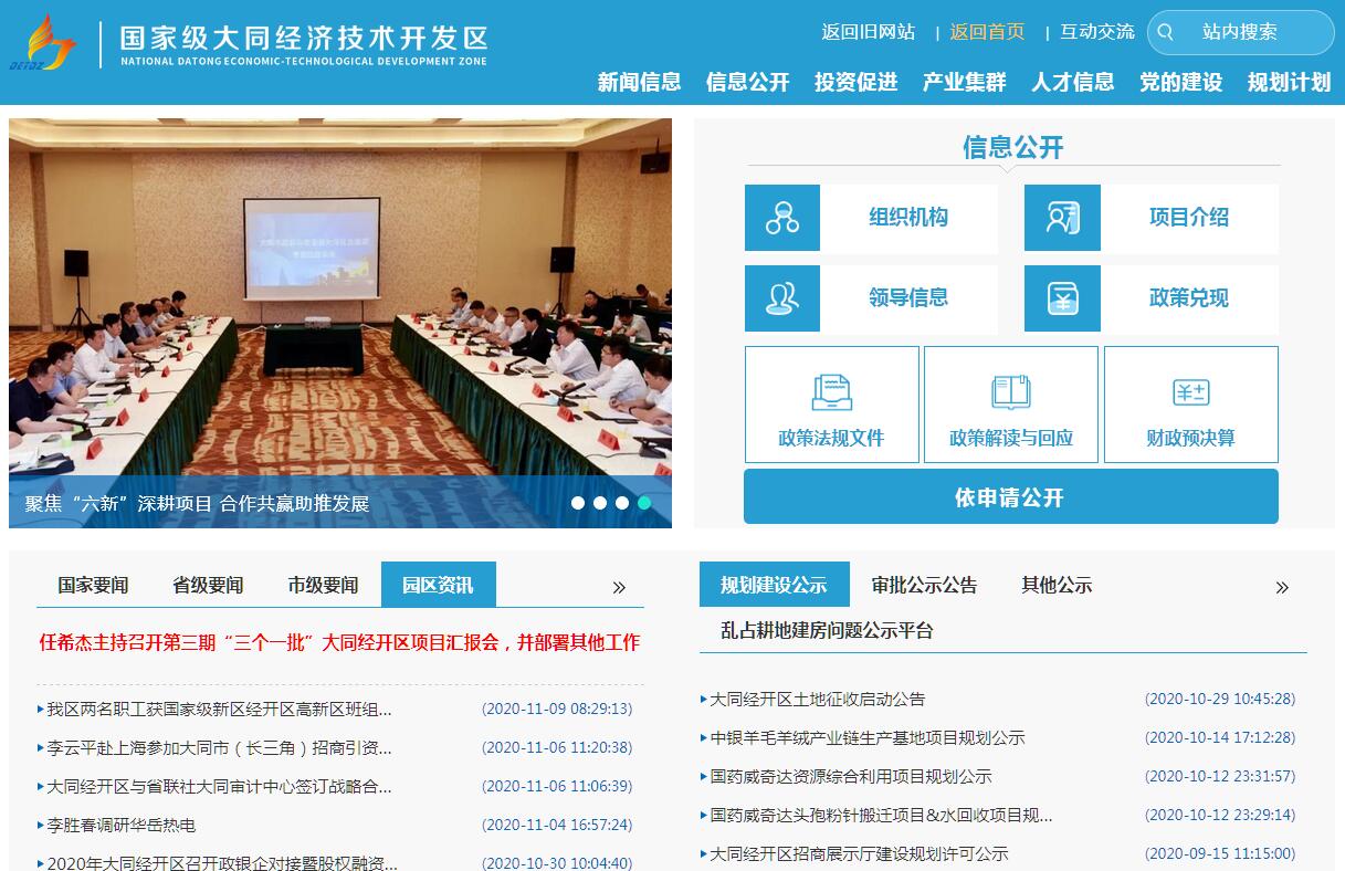 | 网站简介: 大同经济技术开发区是1992年11月首批批准设立的首批省级开发区之一。2010年12月升级为国家级经济技术开发区,是全省获批的第二家国家级经济开发区。大同经开区总规划面积239.4平方公里,起步区规划面积46平方公里。核心区位于大同市区东部,紧邻美丽的文瀛湖畔,环境优美;毗邻机场、高铁及高速公路,交通便利。建成区域实现“九通一平一绿”,配套完善,是中西部地区距首都最近的国家级经济技术开发区,具有承接京津冀产业转移的天然优势。大同经开区围绕“一区多园、产城融合”的发展思路,已经建成医药工业园区、装备制造园区、高新技术园区、现代服务园区、御东园区五大产业园区,初步形成了以医药和装备制造为支柱,新能源、新材料、电子信息、通用航空、商贸物流、食品加工为辅助的产业布局。目前,正在打造通航产业园区、“氢都”新能源产业园区、大数据产业园区、中银纺织产业园区等特色产业园区。 |