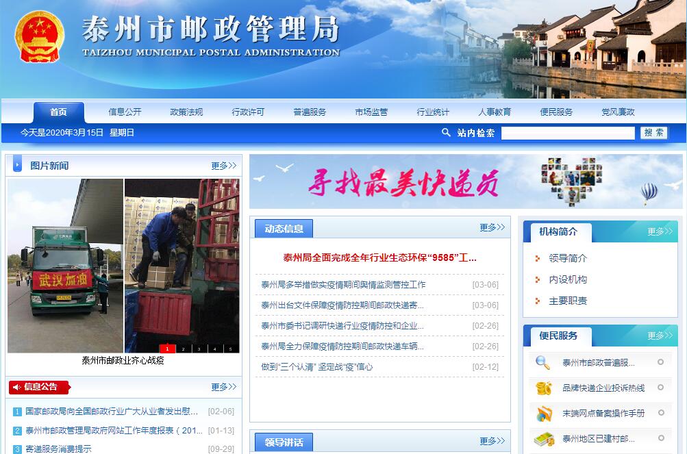 | 网站简介: 泰州市邮政管理局主要工作职责:(一)贯彻执行国家邮政法律法规、方针政策和邮政服务标准。(二)研究拟订本地区邮政发展规划。(三)监督管理本地区邮政市场以及邮政普遍服务和机要通信等特殊服务的实施。(四)负责行业安全生产监管、统计等工作。(五)保障邮政通信与信息安全。(六)承办上级邮政管理部门及地方人民政府交办的其他事项。 |