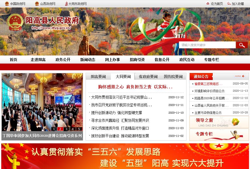 阳高县是山西省大同市下辖县,西汉置高柳县,金改名白登县,清雍正三年(公元1725年)改称现名。阳高地处山西省东北部,北隔长城与内蒙古自治区相邻,南与浑源、广灵为界,西与云州区毗邻,东与天镇县、河北阳原接壤,总面积1678平方公里。2009年,在离阳高县城1.5公里处的龙泉镇李官屯村附近发现了高柳县遗址。高柳县遗址东西长约1000米,南北宽约620米,分布面积62万平方米,属汉代文化遗存。2018年9月25日,获得商务部“2018年电子商务进农村综合示范县”荣誉称号。2018年完成地区生产总值37.59亿元,增长7.9%,比预期高1.4个百分点;第三产业增加值完成17.53亿元,增长7.9%,比预期高0.4个百分点;规上工业增加值完成6.27亿元,增长14.9%,比预期高5.9个百分点;公共财政预算收入完成1.34亿元,增长8.33%,比预期高4.26个百分点;固定资产投资完成38.85亿元,增长17.7%,比预期高7.7个百分点;社会消费品零售总额完成13.4亿元,增长9%,比预期高2个百分点;城镇居民人均可支配收入22176元,增长7.2%,比预期高1个百分点;农村居民人均可支配收入7981元,增长9.9%,比预期高3个百分点。