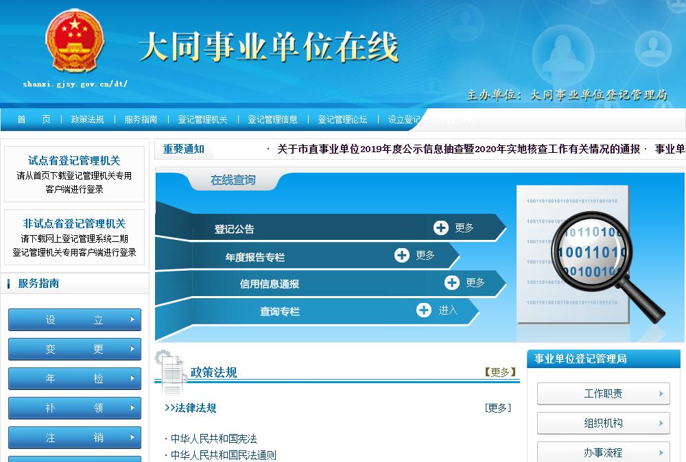 大同市事业单位在线由大同市事业单位登记管理局主办。