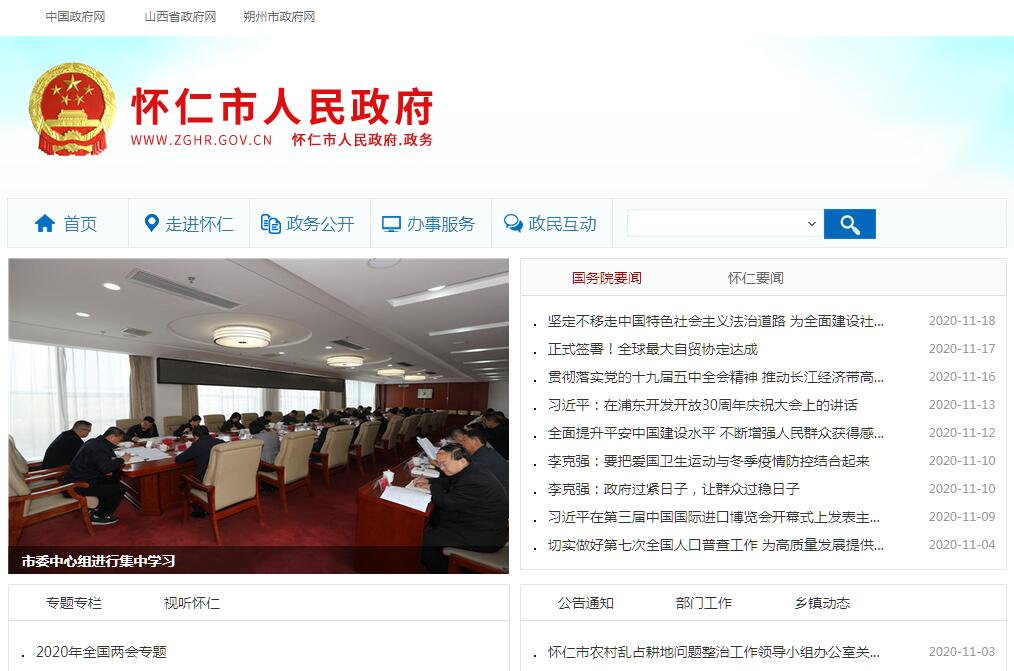 | 网站简介: 怀仁是联结朔州、大同两市的重要节点城市,位于山西省北部、桑干河上游,地处雁门关外、大同盆地中部。全市三分山、七分川,国土总面积1234平方公里,辖10个乡(镇)和1个省级经济开发区,总人口43万人,2018年8月8日成功撤县设市,由山西省直辖,朔州市代管。2019年地区生产总值完成228亿元,增长7.6%;规模以上工业增加值增长9.9%;固定资产投资完成73.7亿元,增长6.6%;社会消费品零售总额完成83.9亿元,增长8.1%;一般公共预算收入完成13.1亿元,增长8.7%;城镇常住居民人均可支配收入37639元,增长7.3%;农村常住居民人均可支配收入18050元,增长9.7%,经济社会各项事业保持良好发展态势。 |