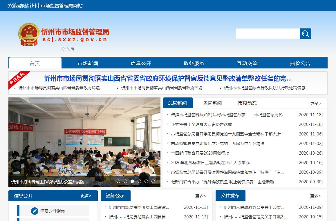 忻州市市场监督管理局主要职责:(一)负责全市市场综合监督管理。贯彻执行国家和省有关市场监督管理的法律法规规章,起草有关规范性文件,制定有关政策、标准,组织实施质量强市战略、食品安全战略和标准化战略,拟订并组织实施有关规划,规范和维护市场秩序,营造诚实守信、公平竞争的市场环境。(二)负责全市市场主体统一登记注册。组织、指导全市各类企业、农民专业合作社和从事经营活动的单位以及个体工商户等市场主体的登记注册工作。建立市场主体信息公示和共享机制,依法公示和共享有关信息,加强信用监管,推动全市市场主体信用体系建设。(三)负责组织和指导全市市场监管综合执法工作。指导全市市场监管综合执法队伍整合和建设,推动实行统一的市场监管。组织查处重大违法案件。规范全市市场监管行政执法行为。(四)负责全市反垄断统一执法工作。统筹推进竞争政策实施,组织指导实施公平竞争审查制度。依法对经营者集中行为进行反垄断审查, 负责垄断协议、滥用市场支配地位和滥用行政权力排除、限制竞争等反垄断执法工作。(五)负责监督管理市场秩序。依法监督管理市场交易、网络商品交易及有关服务的行为。组织指导全市市场监督管理系统查处价格收费违法违规、不正当竞争、违法直销、传销、侵犯商标专利知识产权和制售假冒伪劣行为。指导全市广告业发展,监督管理广告活动。指导查处无照生产经营和相关无证生产经营行为。指导市消费者协会开展消费维权工作。(六)负责全市宏观质量管理。组织实施国家质量振兴纲要和全市“质量强市、名牌兴市”发展战略,负责拟定相关政策、规划、措施和考核办法,开展全市质量状况统计分析,实施政府质量奖励制度。协调建立重大工程设备质量监理制度。负责组织重大产品质量事故的调查。组织落实缺陷产品召回制度。监督管理产品防伪工作。(七)负责全市产品质量安全监督管理。管理全市产品质量安全风险监控和市级监督抽查工作。建立并组织实施质量分级制度、质量安全追溯制度。负责全市纤维质量监督工作。(八)负责全市特种设备安全监督管理。综合管理全市特种设备安全监察、监督工作,监督检查高耗能特种设备节能标准和锅炉环境保护标准的执行情况。(九)负责全市食品安全监督管理综合协调。负责食品安全应急体系建设,组织指导重大食品安全事件应急处置和调查处理工作。建立健全食品安全重要信息直报制度。承担市食品安全委员会日常工作。(十)负责全市食品安全监督管理。建立覆盖食品生产、流通、消费全过程的监督检查制度和隐患排查治理机制并组织实施,防范区域性、系统性食品安全风险。推动建立食品生产经营者落实主体责任的机制,健全食品安全追溯体系。组织开展全市食品安全监督抽检、风险监测、核查处置和风险预警、风险交流工作。组织实施全市特殊食品监督管理。组织指导全市食盐生产经营质量安全监管和食盐专营工作。负责酒类商品监督管理工作。(十一)负责统一管理全市计量工作。推行法定计量单位和国家计量制度,管理全市计量器具及量值传递和比对工作。规范、监督全市商品量和市场计量行为。(十二)负责统一管理全市标准化工作。推动全市新型标准体系建设。组织制定市级地方标准,负责市级地方标准的立项、审查、批准、编号、发布和复审工作。监督国家标准、行业标准和地方标准的贯彻实施。依法监督管理团体标准和企业标准工作。推动对标达标相关工作。组织实施各级标准化示范试点工作。管理全市商品条码工作。(十三) 负责统一管理、监督和协调全市认证认可、检验检测工作。组织实施国家统一的认证认可和合格评定监督管理制度。推进检验检测机构改革,规范检验检测市场,完善检验检测体系。指导协调全市检验检测行业发展。(十四) 负责全市知识产权工作。拟订并组织实施加强知识产权强市建设、强化知识产权创造、保护和运用的发展规划和制度措施。推动全市知识产权保护体系建设。指导和监督全市知识产权保护工作。促进知识产权运用。(十五)负责市场监督管理科技和信息化建设、新闻宣传。(十六)指导、协调全市市场监督管理系统开展非公经济组织党建工作。(十七)负责药品(含中药、民族药,下同)、医疗器械和化妆品安全监督管理。监督实施药品、医疗器械和化妆品监督管理的法律法规和规章,起草规范性文件并监督实施。建立落实药品重大信息直报制度,并组织实施和监督检查,着力防范区域性、系统性药品安全风险。 (十八)监督实施国家药典等药品、医疗器械和化妆品标准、分类管理制度。配合实施国家基本药物制度。(十九)负责药品质量管理规范认证,。负责药品、医疗器械的行政许可工作。承担执业药师注册管理工作。(二十)依法承担药品、医疗器械和化妆品安全应急管理工作。组织和指导药品、医疗器械和化妆品安全事故应急处置和调查处理工作,监督事故查处落实情况。依职责组织开展药品不良反应、医疗器械不良事件和化妆品不良反应的监测、评价、上市后风险管理和处置工作。(二十一)监督实施药品、医疗器械和化妆品经营、使用质量管理规范。组织实施药品、医疗器械和化妆品监督检查,依法查处违法行为。监督实施问题产品召回