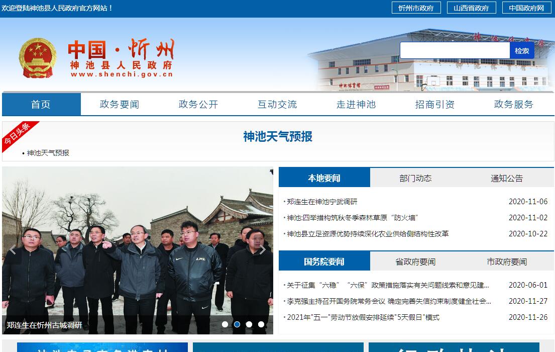 | 网站简介: 神池县,山西省忻州市辖县。地处晋西北黄土高原,地跨东经111°—112°18′,北纬38°56′—39°24′之间。始建于春秋时期,历史悠久,东北隔内长城与朔州为邻,东南和南部分别与宁武县为界,西与五寨县毗连,北与偏关县的大部分和平鲁县的部分接壤。神池县是典型的农业县,收入主要来源于种植、养殖等。乡镇企业和工业基础薄弱。主要产品有煤、水泥、铝矾土等。2018年9月25日,获得商务部“2018年电子商务进农村综合示范县”荣誉称号。2018年神池县实现生产总值25.4亿元。2020年7月,全国爱卫会确认神池县为2019年国家卫生县城。 |