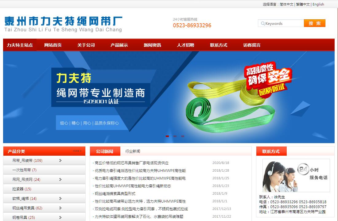 | 网站简介: 泰州市力夫特绳网带厂是一家专业从事吊装带制作的生产型企业,拥有固定资产数千万元人民币。旗下产品包括:吊装带,吊网,扁平吊带,引纸绳,钢丝绳,吊索具,柔性吊带,尼龙吊网,扁平吊装带,圆形吊装带,尼龙吊网,钢卷吊具等,设及各个行业各个领域。吊货网规格型号全面、图片尺寸图解详细、技术参数及使用规范标准;是信誉好优质可靠的吊网厂家;直销价格优惠,服务周到;钢丝绳哪家好,优选泰州力夫特。销售范围涵盖江苏/南京/无锡/徐州/常州/苏州/南通/连云港/淮安/盐城/扬州/镇江/宿迁;北京/上海/广州/深圳/成都/杭州/武汉/重庆/南京/天津/苏州/西安/长沙/沈阳/青岛/郑州/大连/东莞/宁波/厦门/福州/无锡/合肥/昆明/哈尔滨/济南/佛山/长春/温州/石家庄/南宁/常州/泉州/南昌/贵阳/太原/烟台/嘉兴/南通/金华/珠海/惠州/徐州/海口/乌鲁木齐/绍兴/中山/台州/兰州等江苏地区及全国各大城市。 |