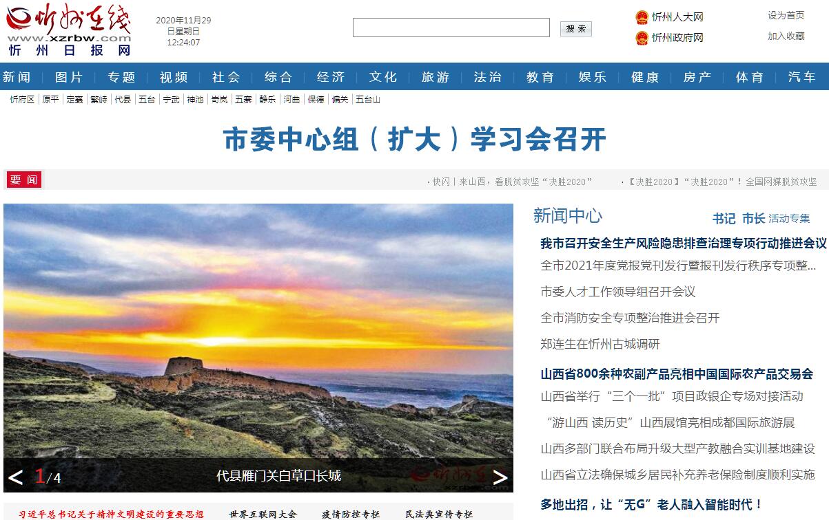 | 网站简介: 忻州在线是由忻州日报社主办的权威新闻门户网站。作为让世界了解忻州、让忻州走向世界的一个重要窗口,忻州在线在第一时间向网民提供权威、真实的忻州地区各类新闻。 |