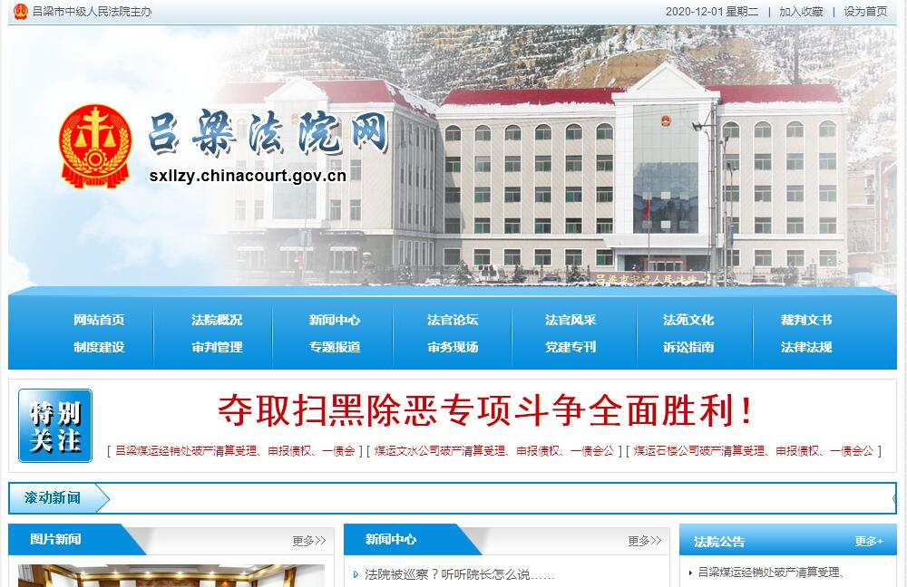 吕梁法院网由山西省吕梁市中级人民法院主办。