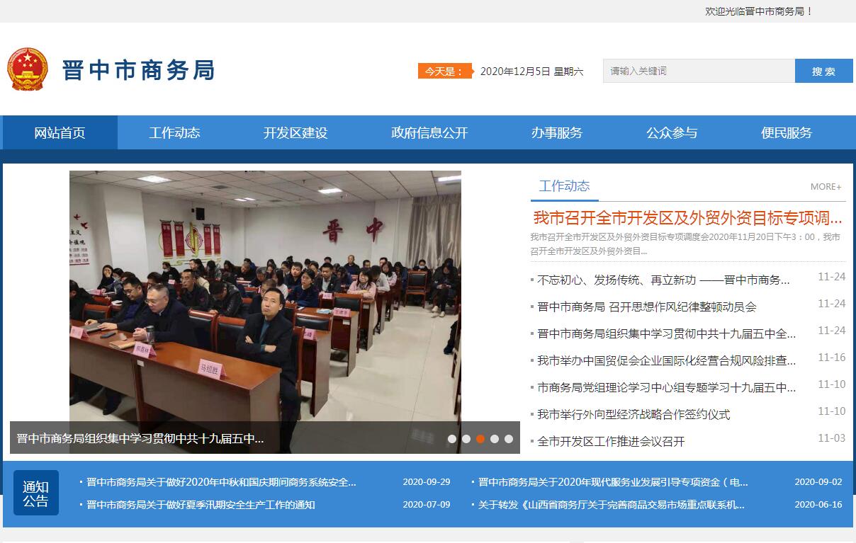 | 网站简介: 晋中市商务局主要职责:贯彻落实国家、省委、市委关于商务工作的方针政策和决策部署,职责涉及:国内外贸易和国际经济合作、流通产业发展、商贸服务业和社区商业发展、商务领域信用建设、商务和粮食领域综合行政执法、重要消费品市场调控和重要生产资料流通管理、进出口贸易、服务贸易及服务外包发展、外商投资、指导服务协调全市开发区工作。 |