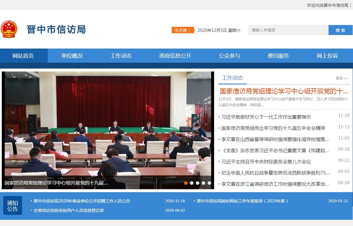 晋中市信访局主要职责:(一)负责处理市内群众和市外人士给市委、市政府的来信,接待群众来访,保证信访渠道畅通;及时准确地向市委、市政府和市委办公室、市政府办公室领导同志反映来信、来访、网上投诉中提出的重要建议、意见和问题;综合分析信访信息,开展调查研究,提出制定修改完善有关方针、政策和法律法规的建议。(二)承办省委办公厅、省政府办公厅、省信访局交办的信访事项。(三)承办市委、市政府和市委办公室、市政府办公室交办的信访事项;向各县(区、市)、市直有关部门转办、交办信访事项,督促检查重要信访事项的处理和落实。(四)协调处理跨地区、部门的重要信访问题;推动协调处理群众到市上访和异常、突发信访事件。(五)指导全市信访工作,起草有关信访工作的意见、措施和办法,推动中央、省、市关于信访工作决策部署的贯彻落实;总结推广信访工作的经验,提出改进和加强信访工作的意见和建议;检查、指导市直各部门的信访工作和各县(区、市)委、政府机关的信访工作。(六)了解掌握信访工作队伍建设情况,组织信访干部的培训。指导全市信访信息系统建设和应用。(七)承担市信访局机关日常运转;负责市信访工作联席会议的日常工作,督促落实联席会议决定的事项。(八)负责信访工作的宣传和信息发布,协调信访工作外事活动和对外交流。(九)完成市委、市政府和市委办公室、市政府办公室交办的其他事项。