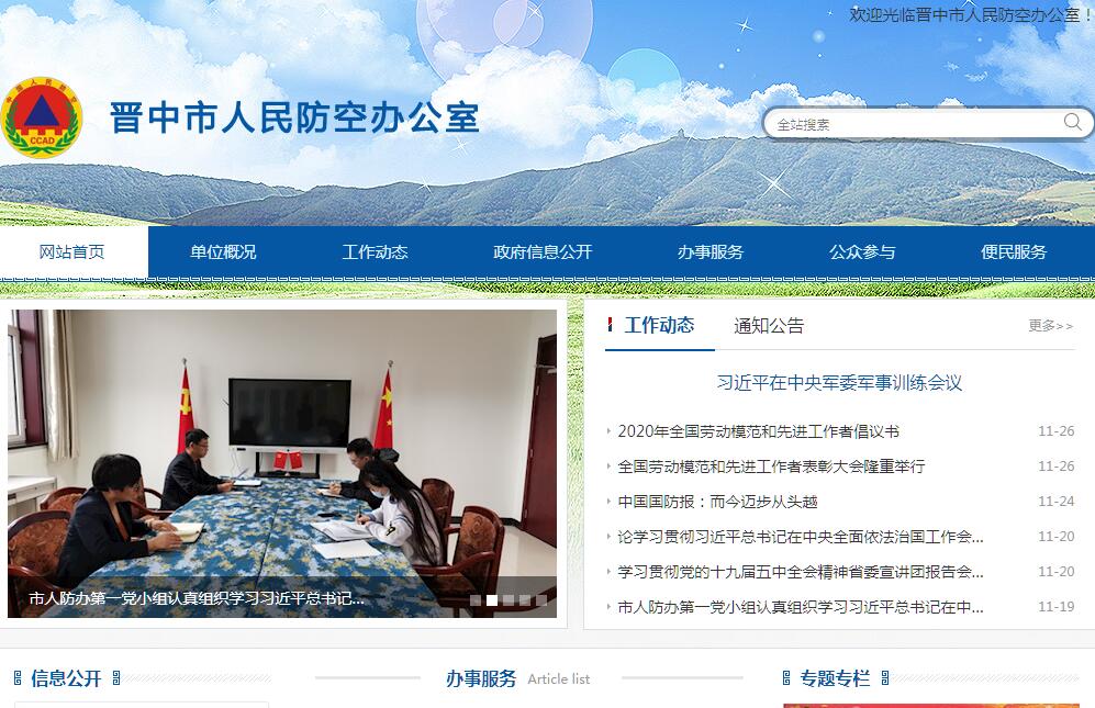 晋中市人民防空办公室主要职责:(一)拟定人民防空事业规划,编制人民防空工作年度计划,并组织实施。(二)组织实施人民防空法律、法规和方针、政策;起草人民防空规范性文件,并监督实施。组织开展人民防空行政执法,依法审批相关事项。(三)负责人民防空工程规划、审批、建设、维护和质量技术管理;依法征收人民防空工程易地建设费;对城市地下空间开发利用兼顾人民防空功能进行监督和管理。(四)开展人民防空组织指挥和重要经济目标防护工作,组织拟定并实施城市防空袭方案及相关预案;建设战时人口疏散基地;组织指导群众防空组织建设和防空防灾演练。(五)负责人民防空信息化建设和通信警报建设;组织发放防空防灾警报。(六)负责管理人民防空平战结合工作,对已建人民防空工程设施进行开发利用和管理,依法收取人防工程使用费。(七)组织开展人民防空宣传教育、人民防空理论和人民防空科学技术研究,推广应用科研成果,普及人民防空知识技能。利用人民防空资源开展公共安全、防灾救灾、应急救援宣传教育,普及相关知识技能。(八)利用人民防空资源参与抢险救灾和应急救援。(九)管理和使用人民防空经费及人民防空国有资产,依法征缴社会负担的人民防空经费。(十)战时配合城市防卫、要地防空作战,组织人民开展城市防空袭相关工作,消除突袭后果。(十一)指导监督县(区、市)人民防空工作。(十二)承办市人民政府、晋中军分区交办的有关事项。
