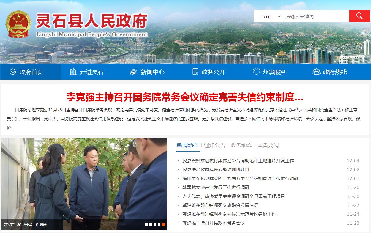 | 网站简介: 灵石县位于山西省中部,晋中市最南端,北临介休市,南接霍州市,东靠沁源县,西连交口县、孝义市,距省会太原150公里,素有“燕冀之御、秦蜀之经”之称。全县国土面积1206平方公里,辖6乡6镇3个社区,278个村、23个居委,总人口27.2万,是全省首批转型综改试点县和扩权强县试点县,境内群山起伏,沟壑纵横,大运公路、南同蒲铁路沿汾河并行而下。灵石也是山西省重要的能源化工基地,中国最具投资潜力和特色魅力城市之一。2018年,地区生产总值完成247.4亿元;规模以上工业增加值完成141.8亿元;固定资产投资完成73.7亿元;一般公共预算收入完成18.16亿元;社会消费品零售总额完成81.6亿元;城乡常住居民人均可支配收入分别达到37665元和17400元。 |